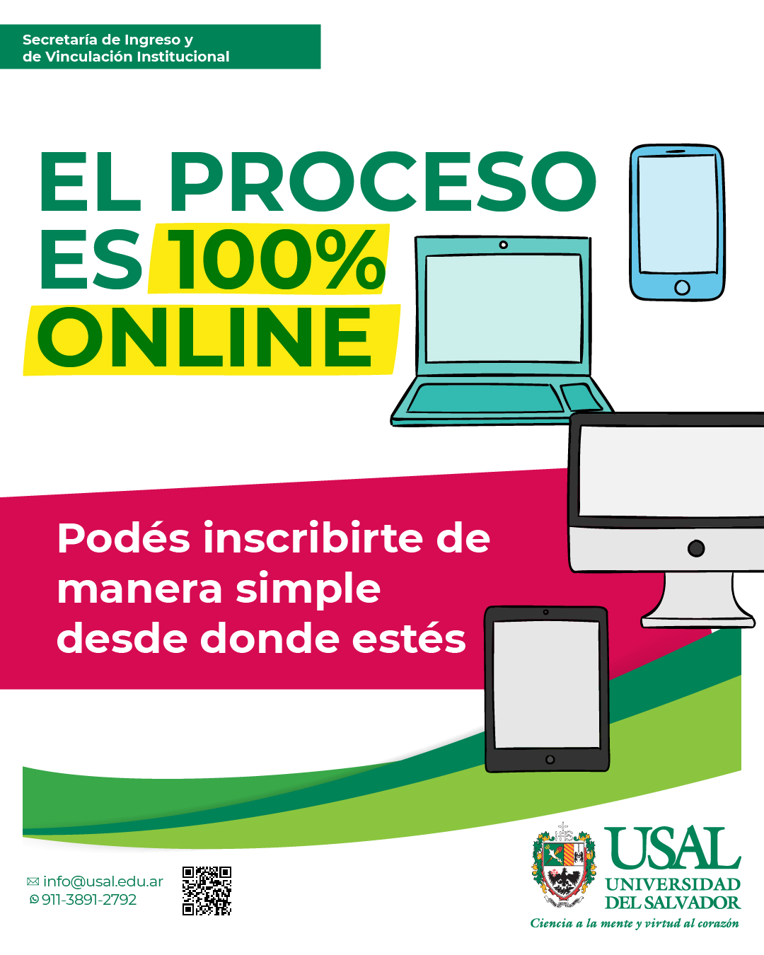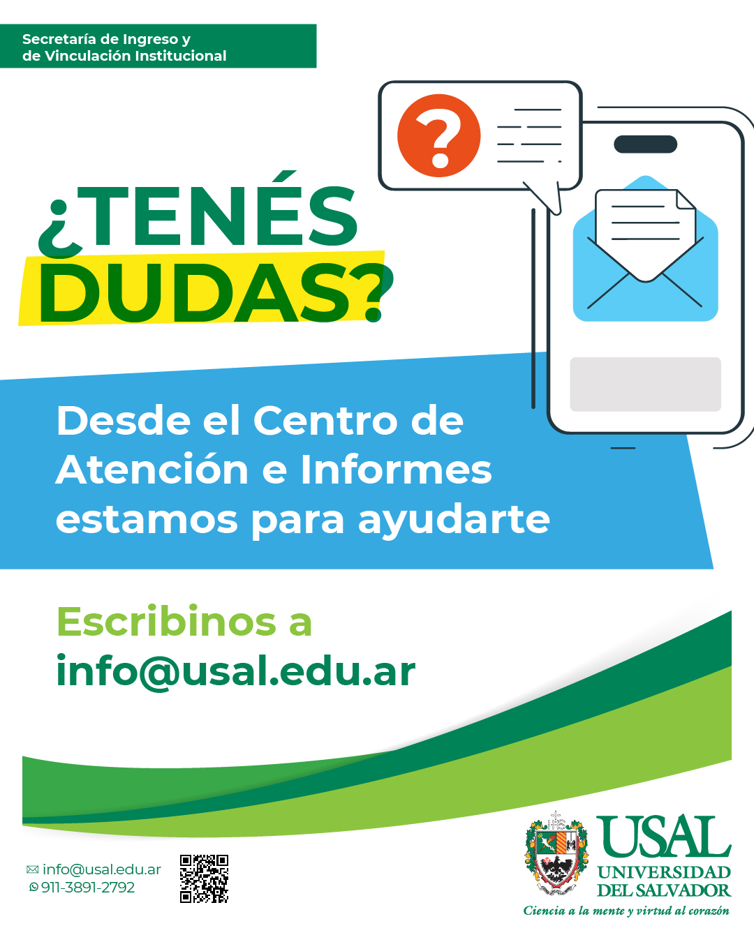 Todavía estas a tiempo de comenzar tu camino, desde el Centro de Atención e Informes de la Universidad del Salvador (USAL) te acompañamos en el proceso.