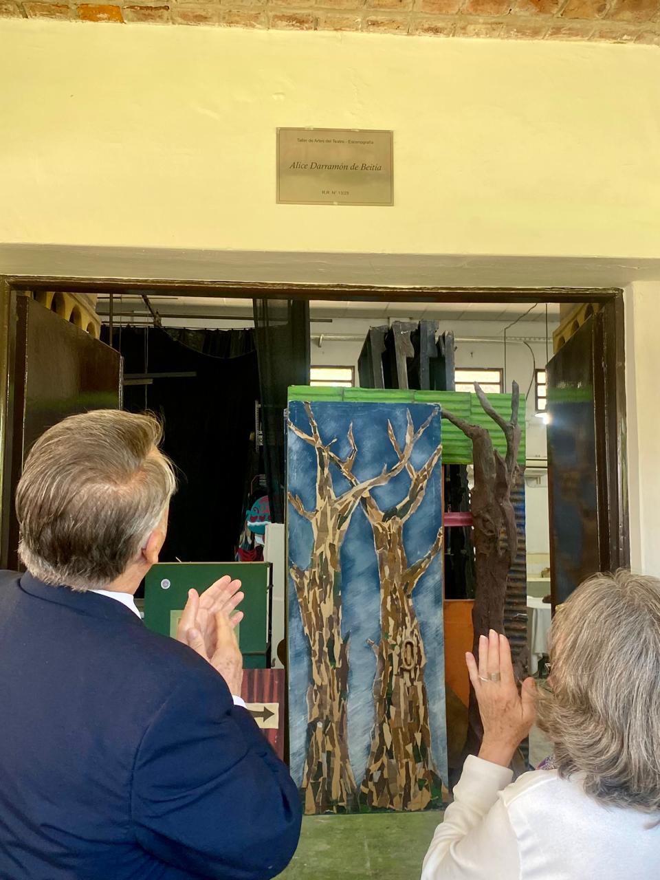 Luego de las emotivas palabras que recordaron la historia y el legado de Alice Darramón de Beitía, el Rector, Carlos Salvadores de Arzuaga, junto al Decano, Marcelo De Simone, y la Directora de la Licenciatura en Artes del Teatro, María Clara Beitía, procedieron al descubrimiento de la Placa Conmemorativa.