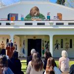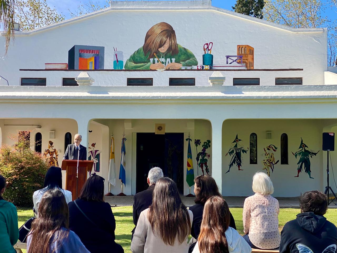 Además, se inauguró un mural colectivo realizado por estudiantes y profesores a partir de dibujos originales de la homenajeada.
