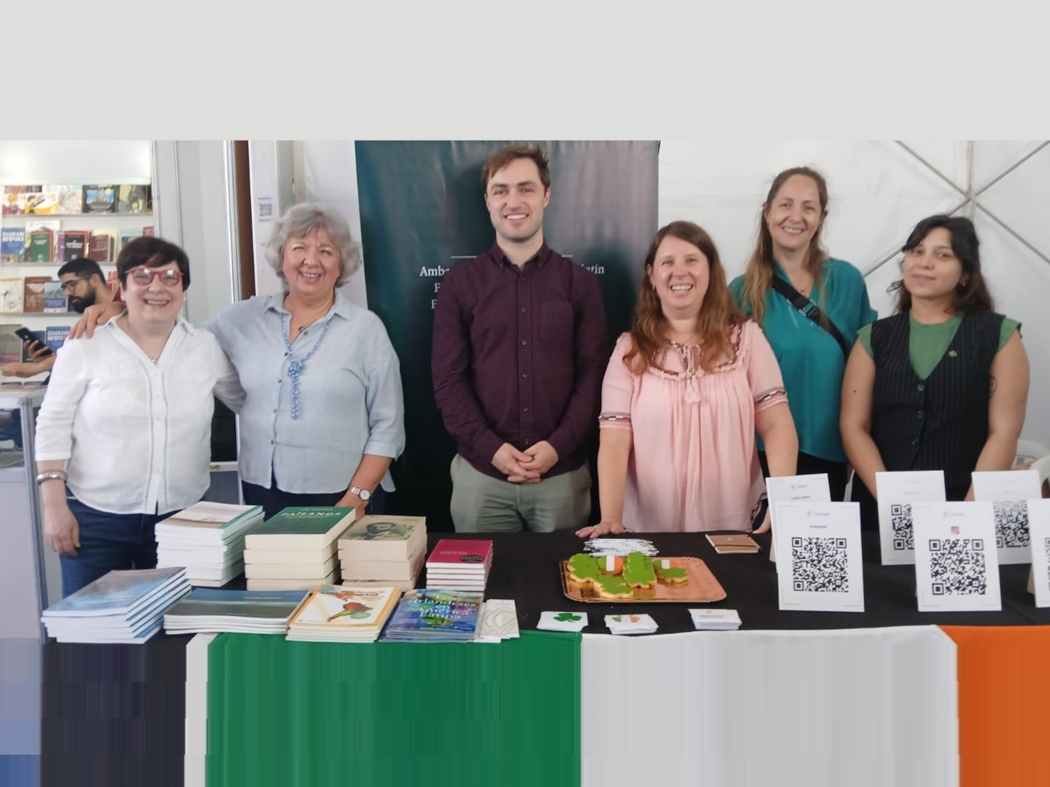 El sábado 4 de octubre, invitadas por la Embajada de Irlanda en Argentina a través de AEIS, las profesoras Mónica Cuello, Viviana Keegan y Verónica Repetti participaron de la FILAB (Feria del Libro de Almirante Brown). La prof. Cuello, diplomada en Estudios Irlandeses por la USAL y coordinadora de los estudios irlandeses que se llevan adelante en UNLa, trazó un recorrido por la literatura irlandesa en el último siglo y por las traducciones al español disponibles en Argentina de obras de autores irlandeses. A continuación, la prof. Repetti se refirió a las actividades que se realizan bajo el marco de la AEIS y luego cedió la palabra a la prof. Keegan, co-titular de la Diplomatura en Estudios Irlandeses de la USAL, quien se refirió a las oportunidades que brinda dicha titulación. Se invitó a todos los presentes a seguir las múltiples actividades sobre estudios irlandeses, en especial, las que inician próximamente como los Seminarios que se dictarán en el marco de la Diplomatura en Estudios Irlandeses, abiertos también al público en general a través del área de Extensión universitaria: