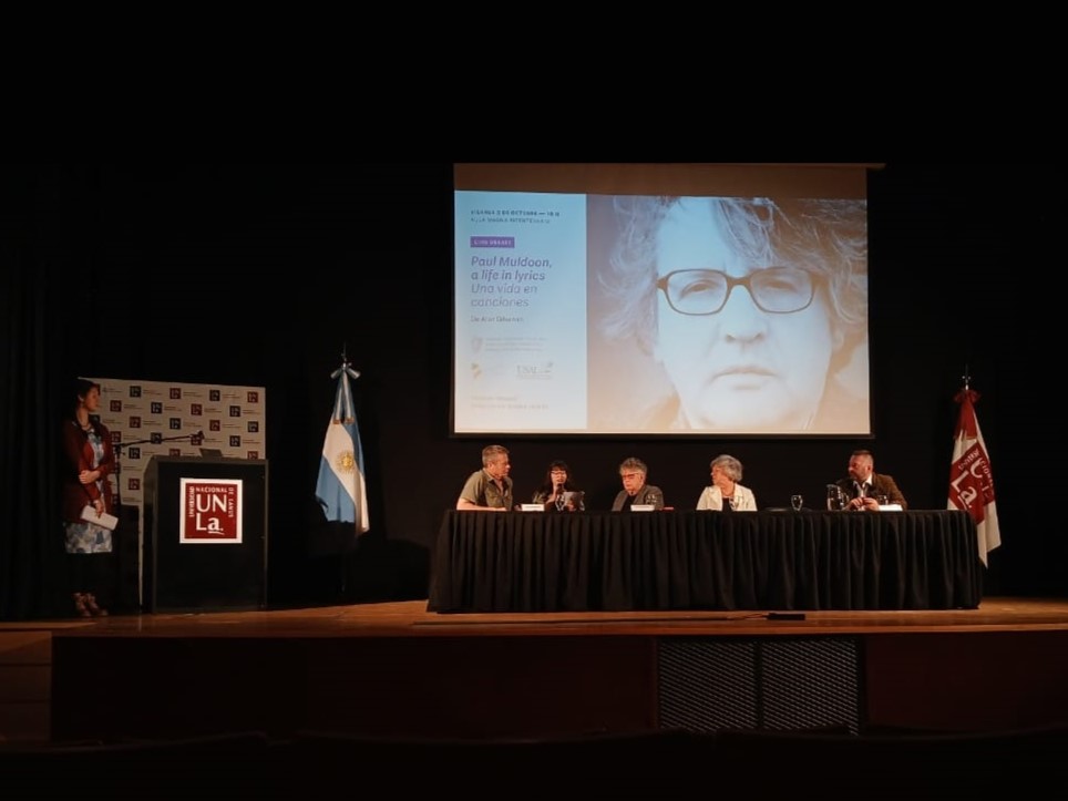 Asimismo, la Trad. Repetti asistió a dos eventos auspiciados por la Cátedra Extracurricular de Estudios Irlandeses “Dermot Keogh” de la USAL que se desarrollaron en la Universidad Nacional de Lanús, en el marco de la carrera de Traductorado Público. En primer lugar, el martes 30 de septiembre se proyectó el documental “From that Small Island” (“Desde esa pequeña isla”), que recorre la historia de Irlanda desde la prehistoria hasta la actualidad. Estuvo presente la Prof. Jane Ohlmeyer (Trinity College Dublin), productora y asesora histórica del documental. El viernes 3 de octubre, con el apoyo de la Embajada de Irlanda en la Argentina, se recibió la visita del poeta irlandés Paul Muldoon, premio Pulitzer, junto con el director de cine Alan Gilsenan. Ambos presentaron el documental que co-produjeron sobre la vida de Muldoon: “A Life in Lyrics” (“Una vida en canciones”).