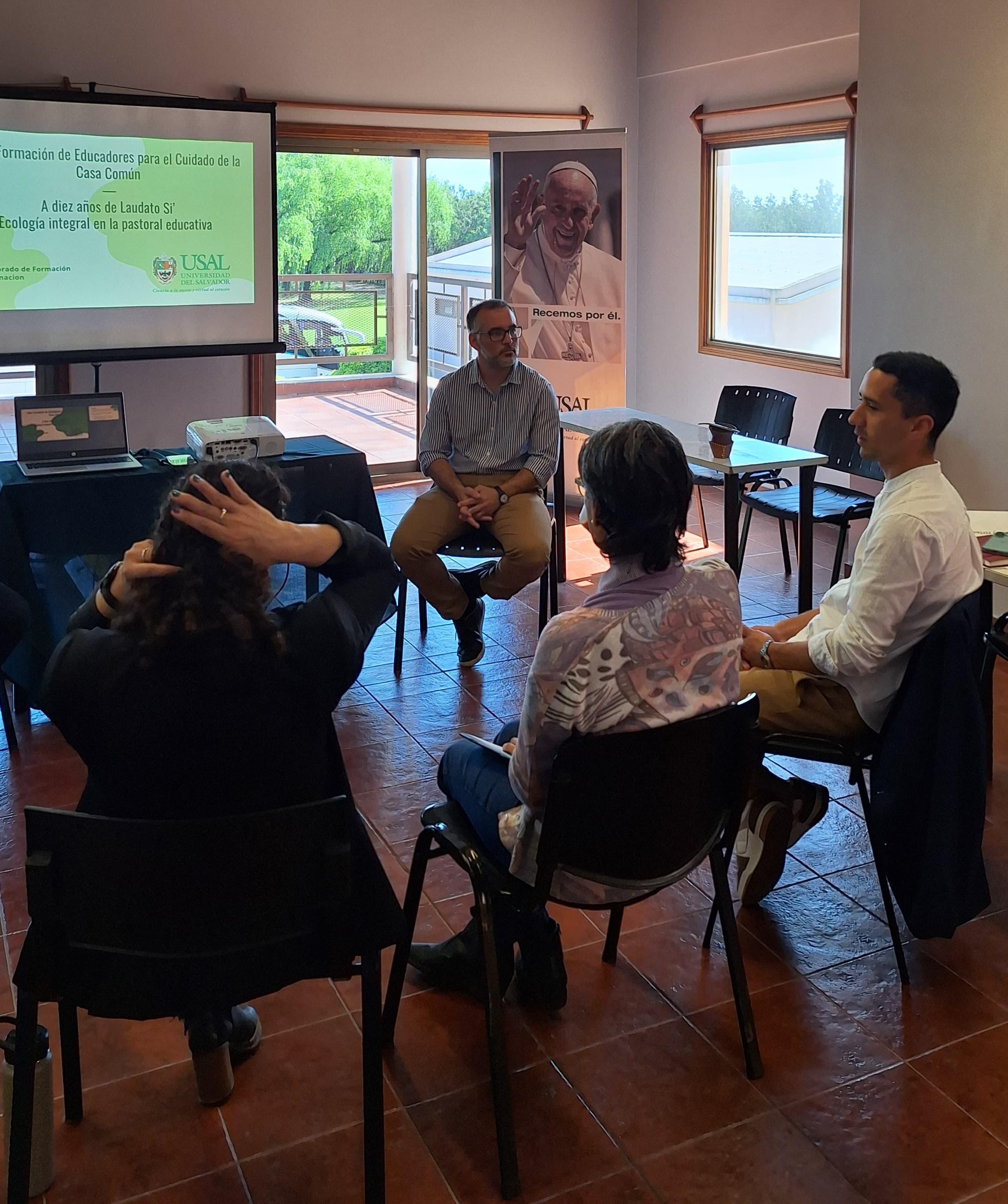 El jueves 2 de octubre, en conjunto con el Vicerrectorado de Formación (VRF), se dictó en el Campus de Pilar el taller “Formación de Educadores para el Cuidado de la Casa Común”, dirigido a docentes, directivos y referentes. El objetivo general es impulsar una formación docente orientada al cuidado de la Casa Común, que favorezca la creación de proyectos escolares ecológicos, inspirados en Laudato Si’.