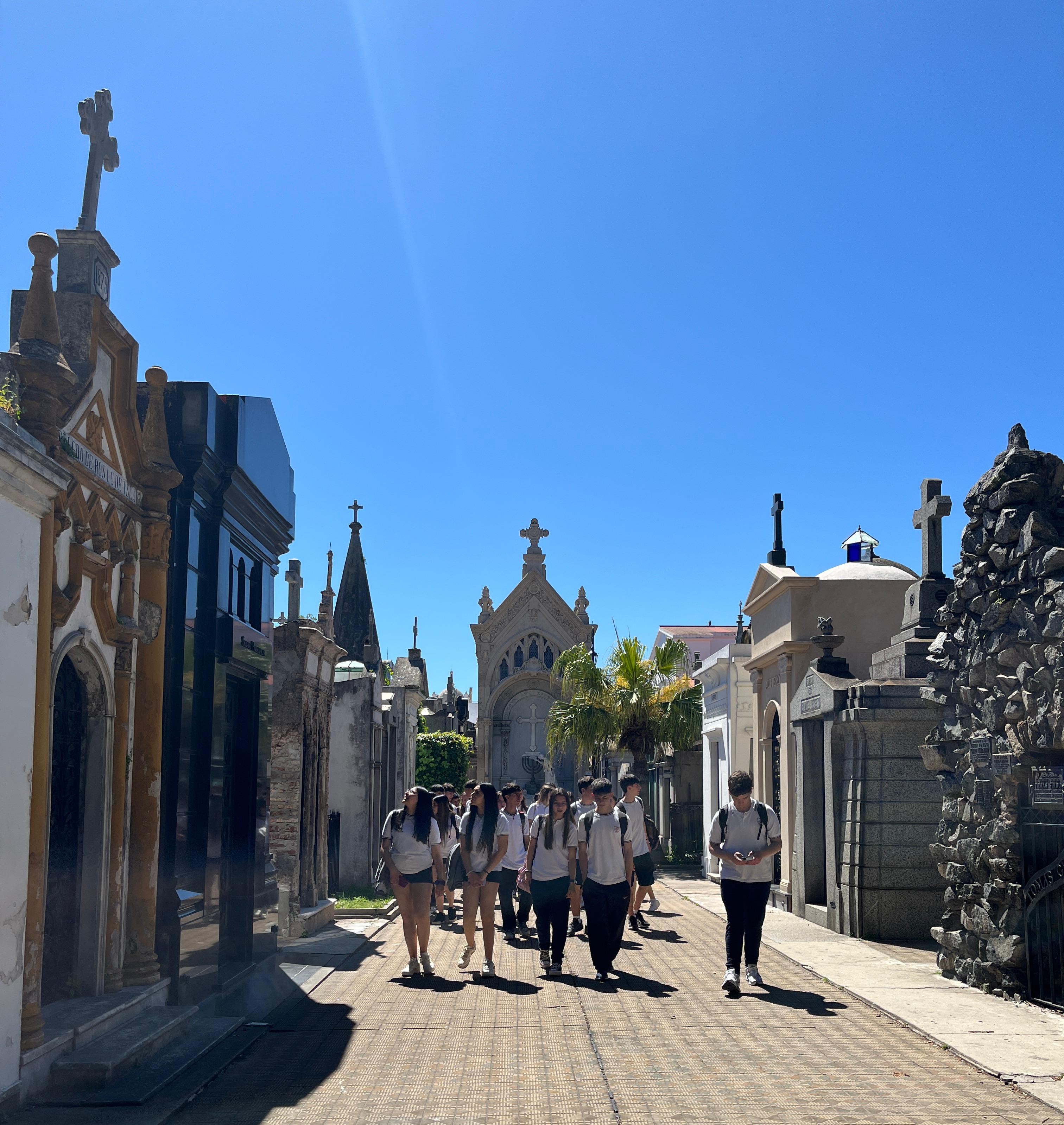 Por otro lado, dentro del proyecto “Caminando la Historia”, que tiene por objetivo acercar a los estudiantes del nivel secundario a diferentes circuitos histórico-culturales a pie, visitamos el barrio de Recoleta: los estudiantes del Instituto San José de Marcos Paz, recorrieron el Cementerio de la Recoleta, la Basílica Nuestra Señora del Pilar y la Plaza Intendente Torcuato de Alvear.
