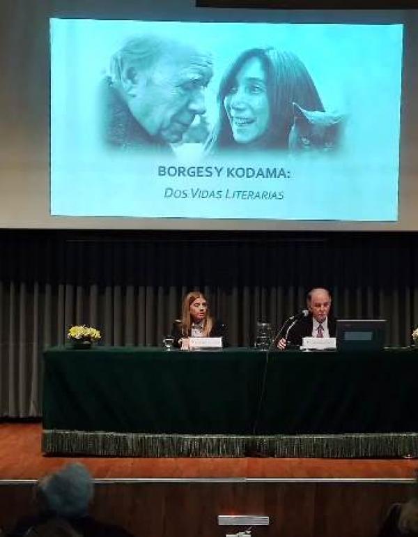 El jueves 1º de junio, en el Salón “San Ignacio de Loyola” de la Universidad del Salvador, el Decano de la Facultad de Filosofía, Historia, Letras y Estudios Orientales, Dr. Bernardo Nante, y la Dra. Claudia Farías Gómez ofrecieron una conferencia sobre las vidas literarias de Jorge Luis Borges y María Kodama.