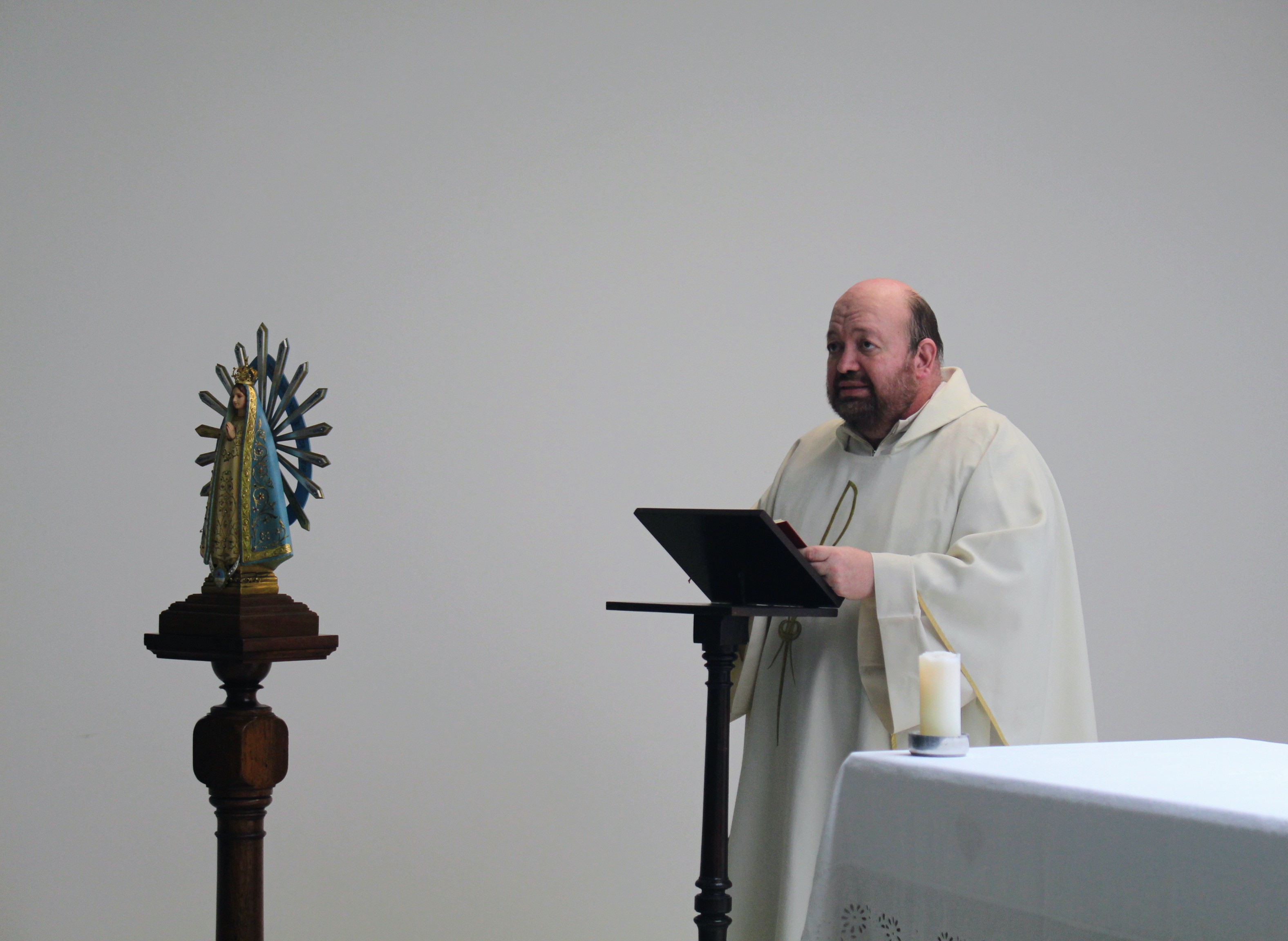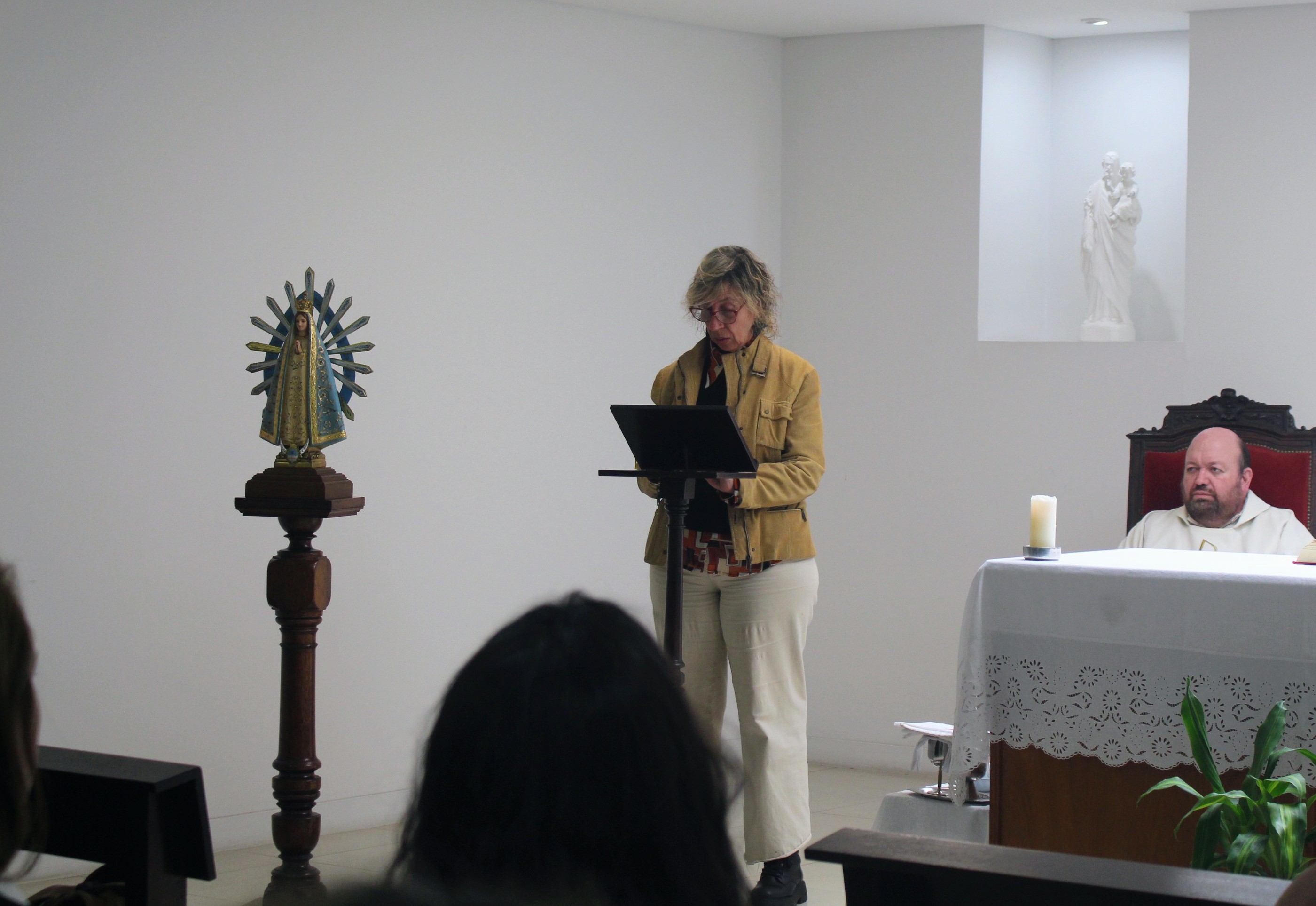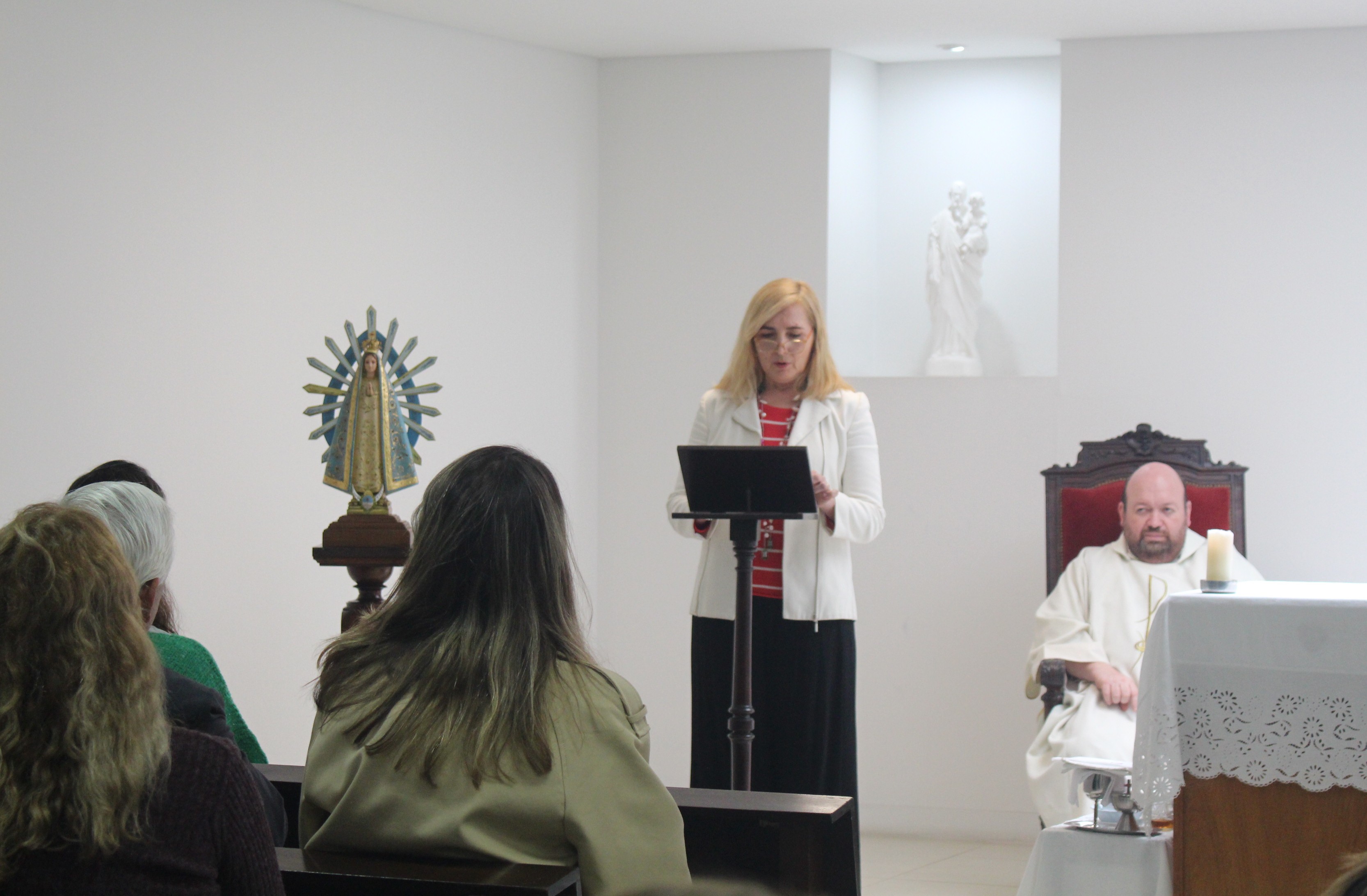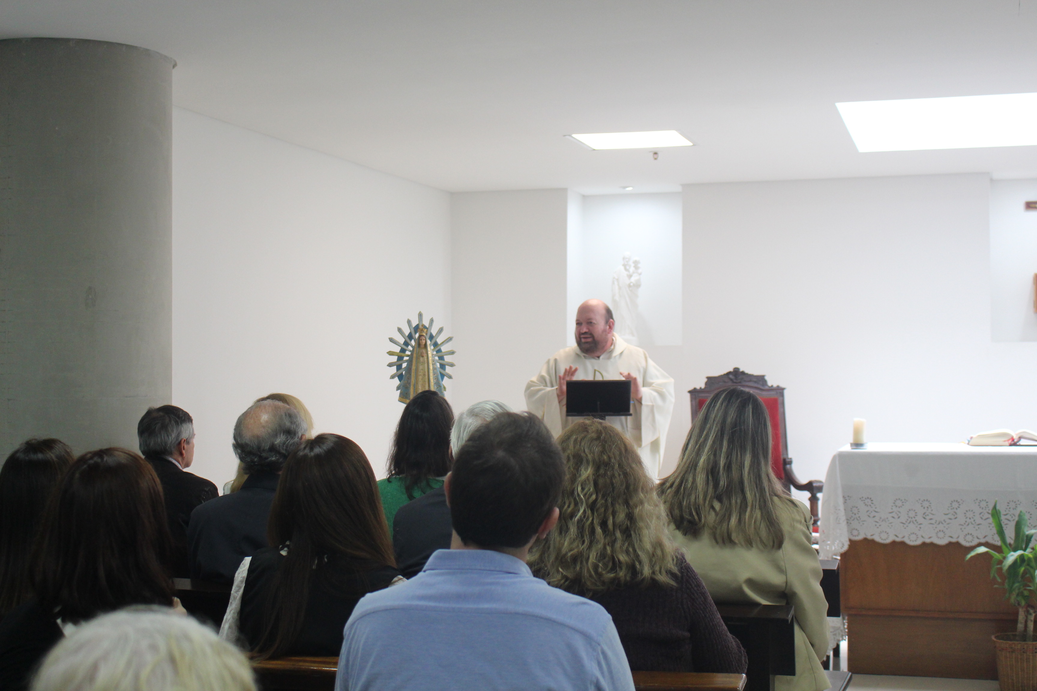 La Santa Misa fue oficiada por el Padre Andrés Tocalini. Las Lecturas de la Palabra del Santo Evangelio estuvieron a cargo de la profesora Victoria Scarpati; la Decana de la Facultad de Psicología y Psicopedagogía, Gabriela Renault, hizo la lectura de los Salmos; y la 2° Lectura según el Evangelio estuvo a cargo del Padre Tocalini.