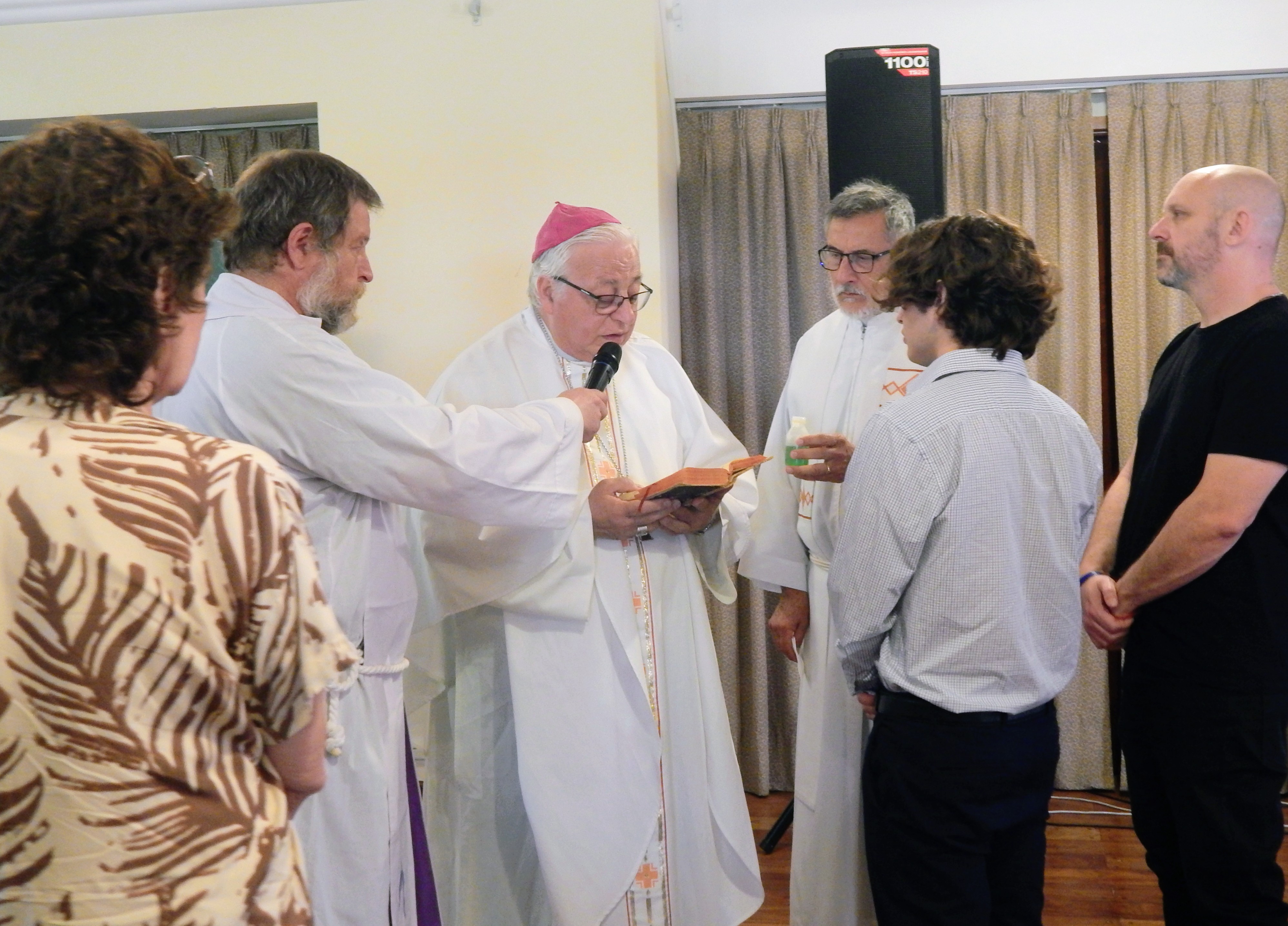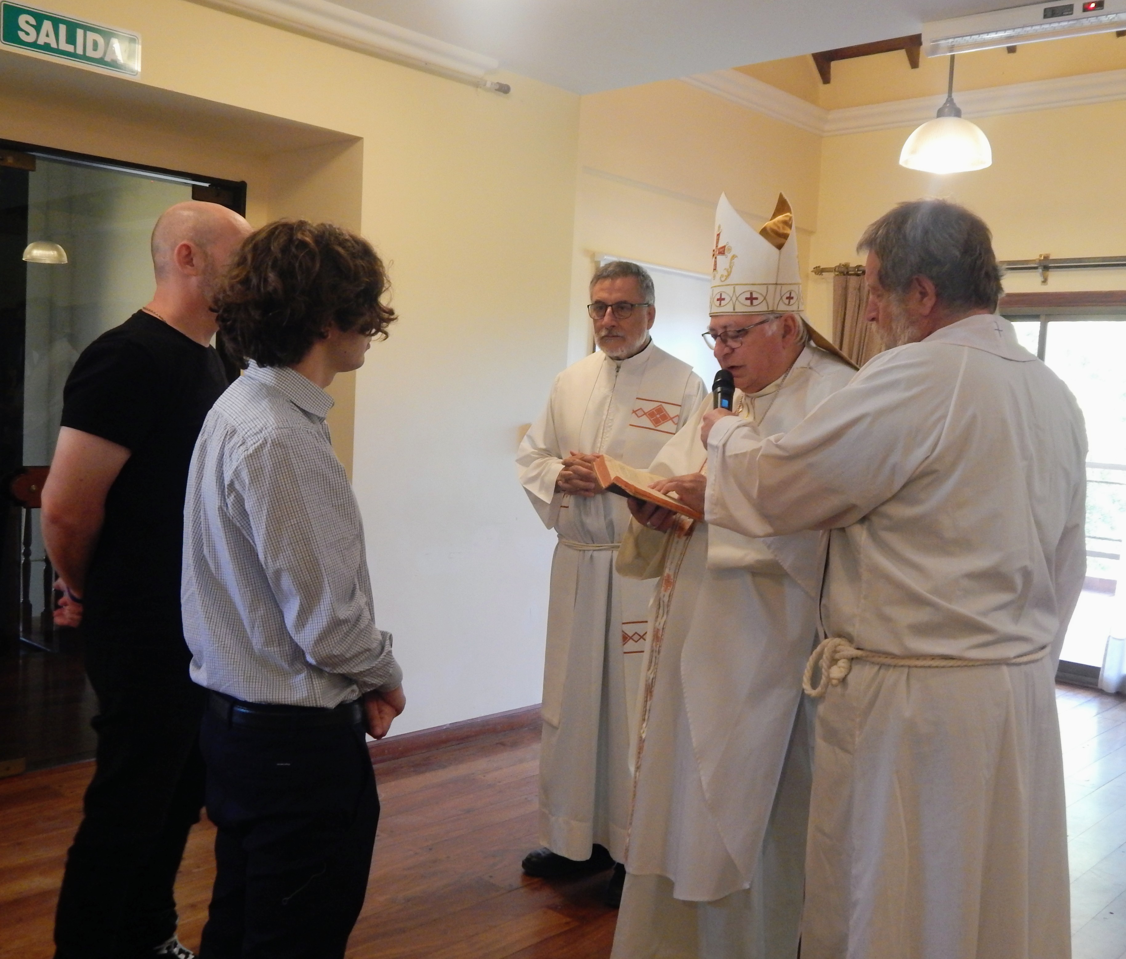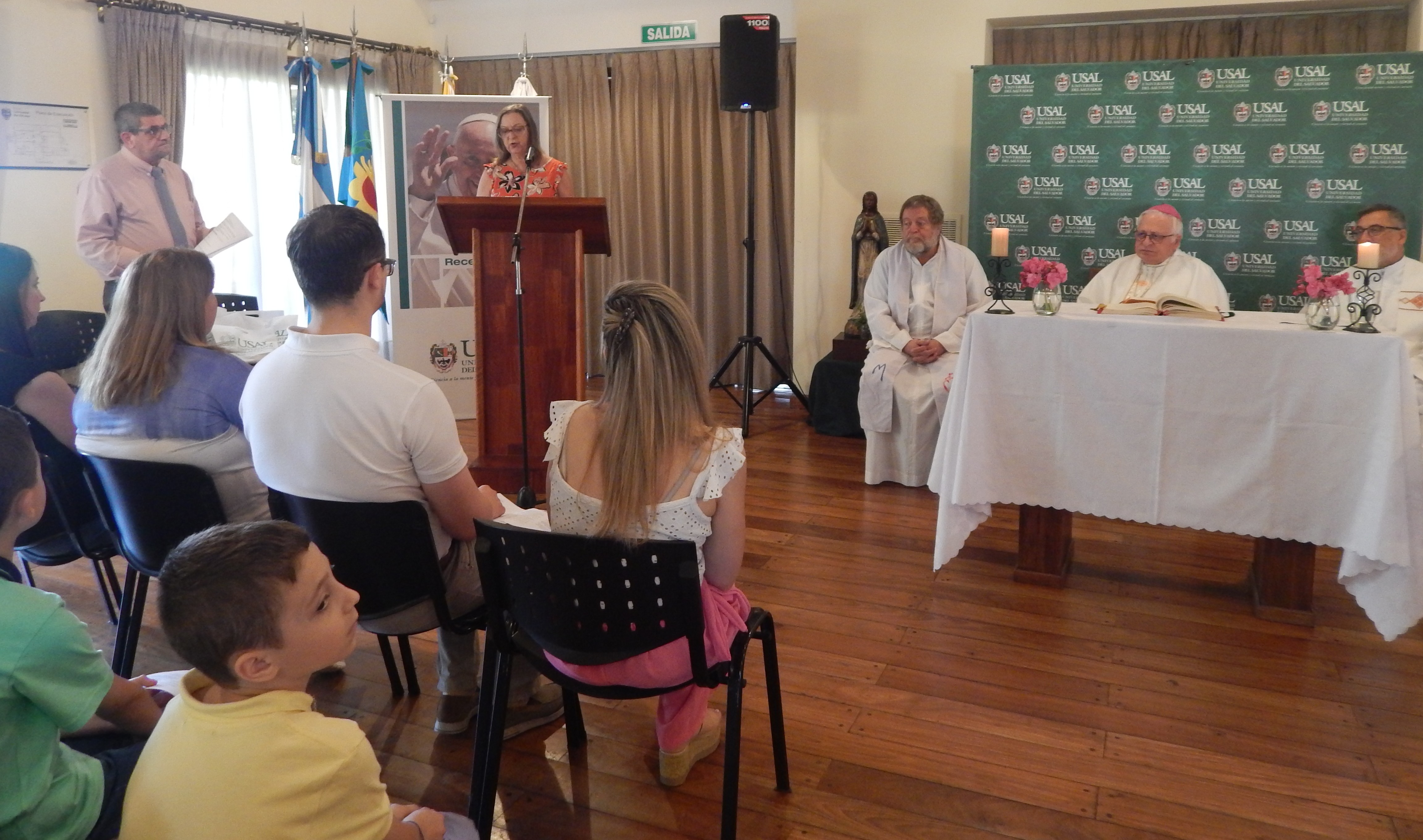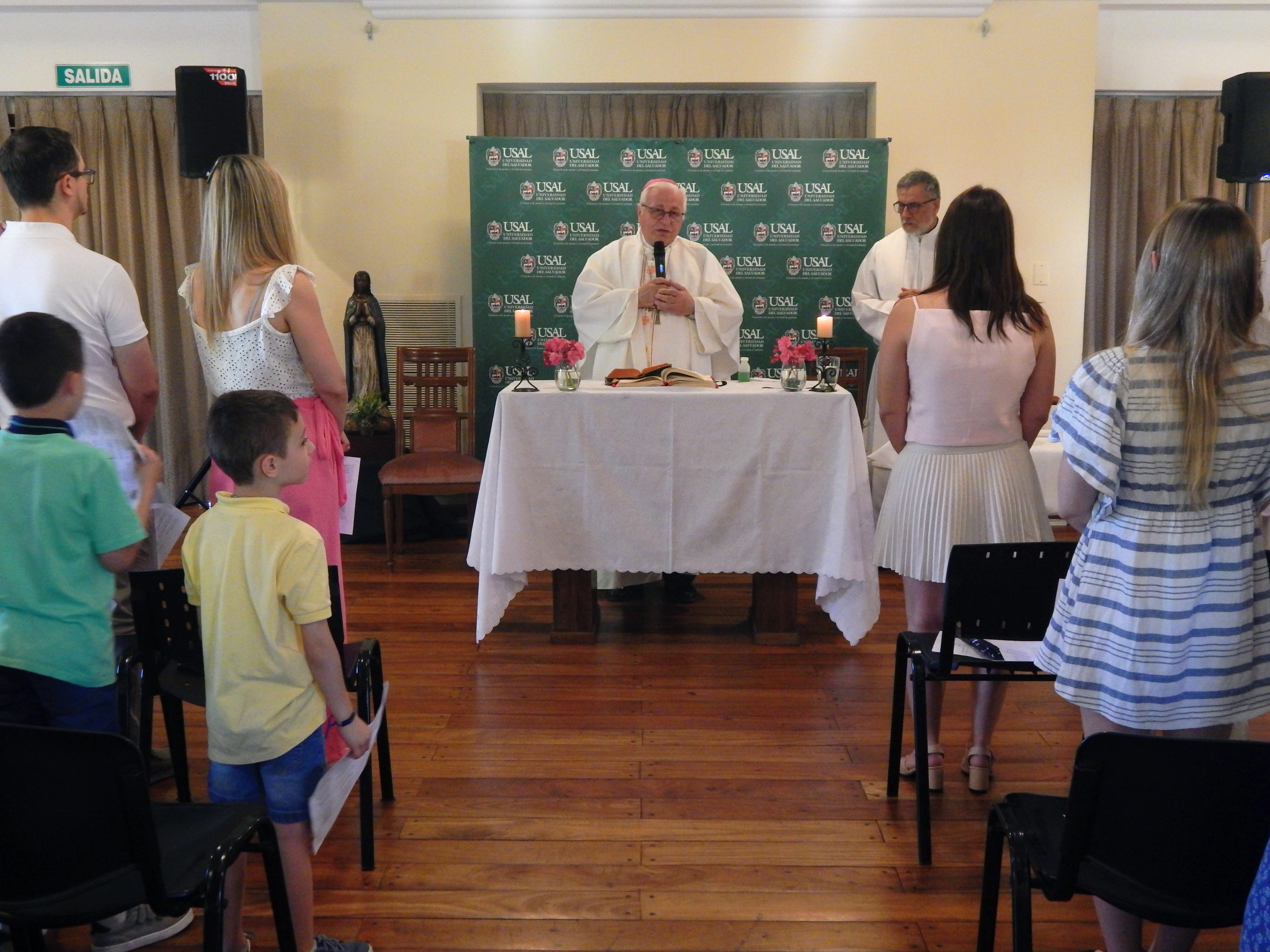 El sábado 13 de diciembre en el Campus Universitario “Nuestra Señora del Pilar”, estudiantes de nuestra Casa de Estudios recibieron los Sacramentos del Bautismo, Confirmación y de la Eucaristía en la celebración presidida por Mons. Justo Rodríguez Gallego, Obispo Auxiliar de Zárate, Campana y concelebrada por el Pbro. Gabriel Tomás.