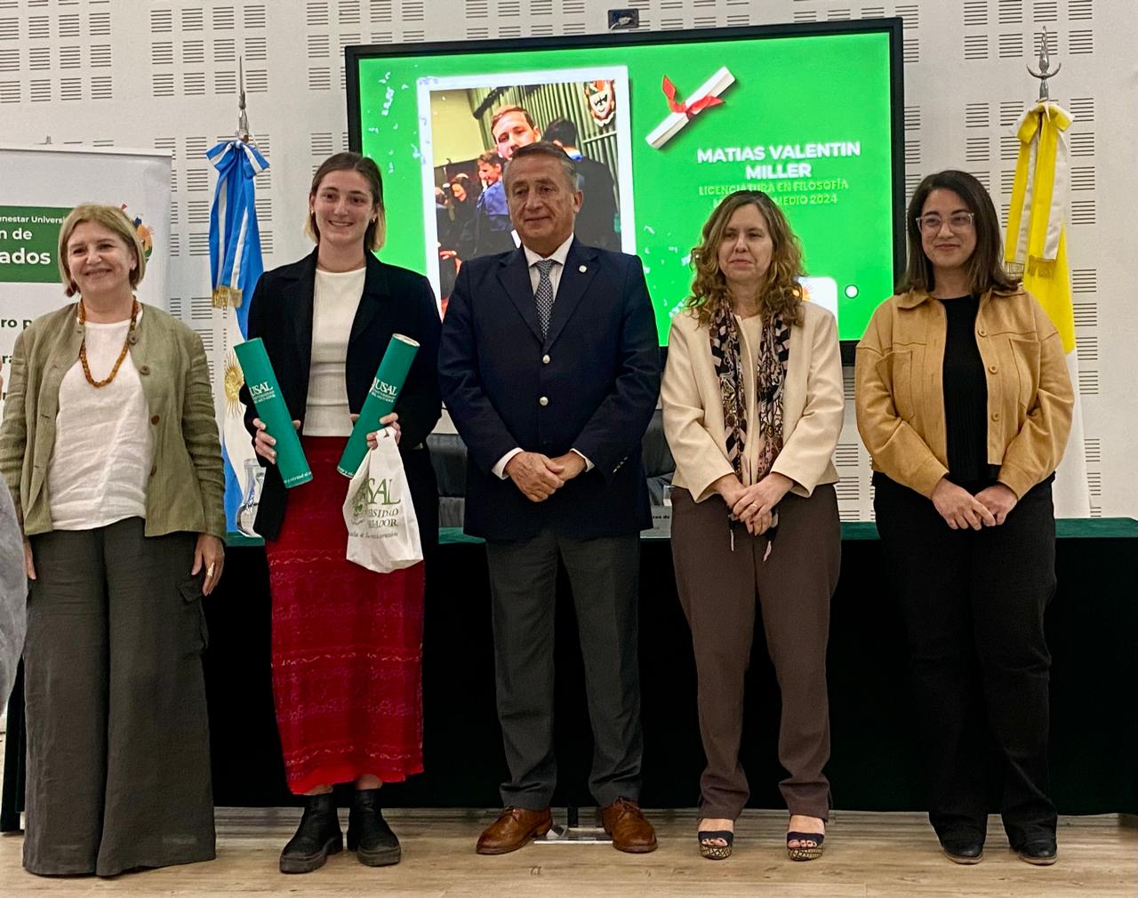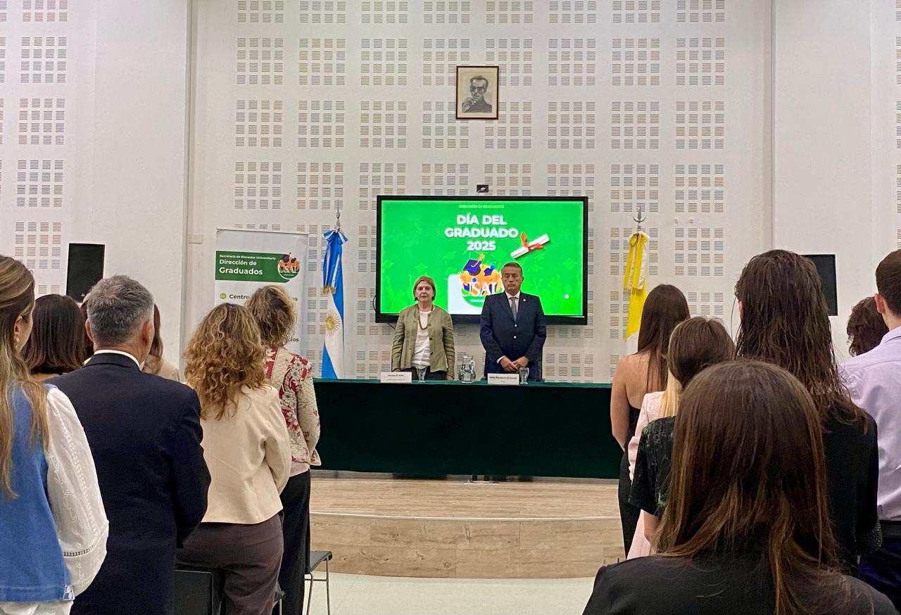El 15 de octubre en el Salón “R.P. Ismael Quiles S.J” se celebró el “Día del Graduado 2024” de la Universidad del Salvador (USAL) donde se homenajeó a los Mejores Promedios del año 2024 y a los ganadores del Undécimo Noveno Concurso “Mejor Trabajo Final de Grado”. Un día donde no sólo celebramos el esfuerzo y la dedicación académica, sino también el valor de una formación integral que nuestra Casa de Estudios ofrece, una educación que trasciende lo académico para formar personas comprometidas con el bien común, la justicia y los valores que nos definen como comunidad.