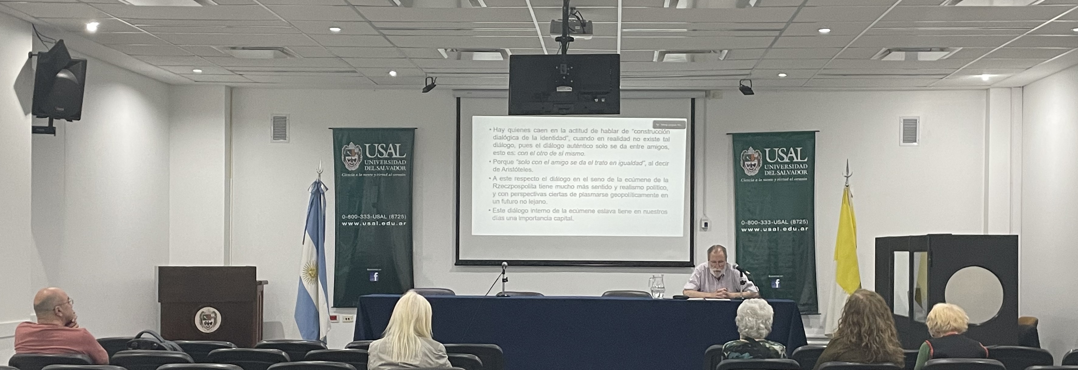 El miércoles 22 de octubre se llevó a cabo la cuarta clase magistral del Ciclo de cultura y estudios polacos (D.D. No.23/25) de la Escuela de Lenguas Modernas, sobre la «La identidad polaca», a cargo del profesor Witold Roman Starża-Kopytyński, presidente de la Unión de los Polacos en la República Argentina, en el marco de la Cátedra Extracurricular de Historia, Lengua y Cultura Polaca y la ACAP, creada en el ámbito del Vicerrectorado de Investigación y Desarrollo en 2004 (R. R. No. 66/04).