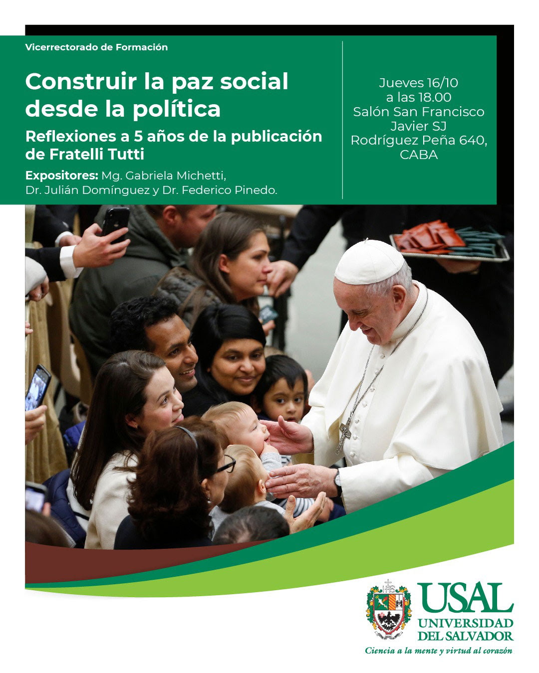 La encíclica recuerda: “No hay punto final en la construcción de la paz social de un país, sino qué es” (FT 232). Este diálogo invita a pensar juntos estrategias que fortalezcan la convivencia democrática y la paz en la sociedad.