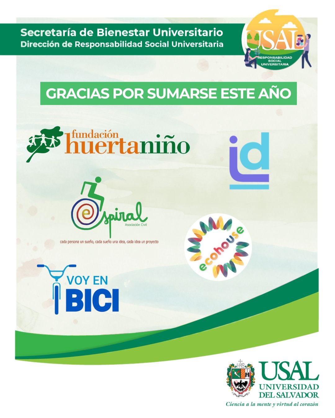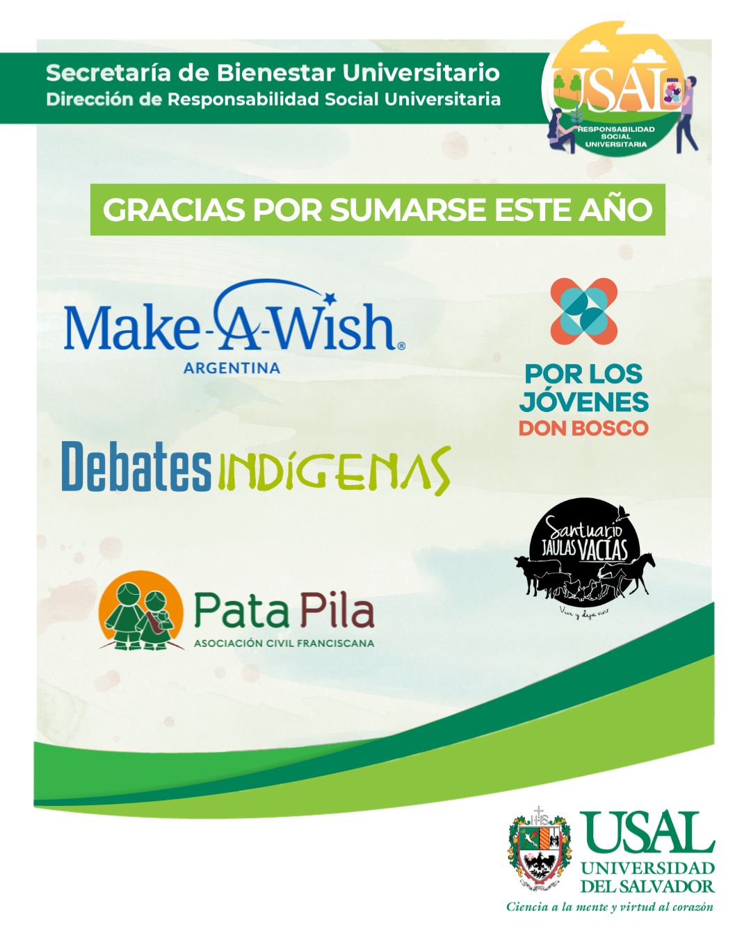 El éxito de este ciclo es posible gracias a la colaboración de organizaciones que trabajan día a día por un mundo mejor. Este año, nuestra Casa de Estudios agradece profundamente el acompañamiento y la labor conjunta de: