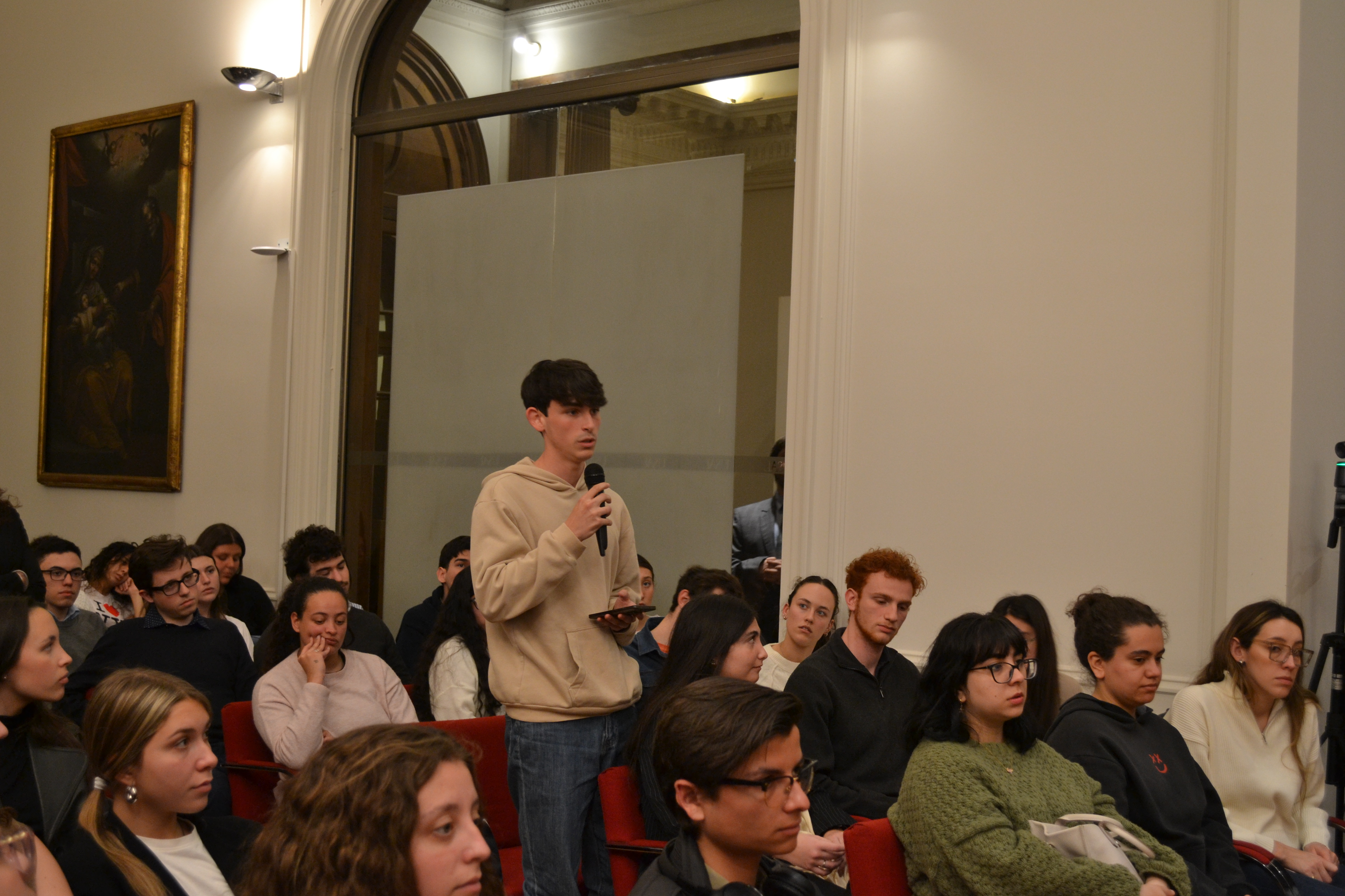 Se hizo hincapié en la importancia de la relación con América Latina y Argentina en particular, buscando fortalecer los lazos de cooperación y diálogo. Un punto destacado de su exposición fue la mención a la presencia e influencia de Francia en África y su enfoque en el desarrollo sostenible y la gobernanza. Finalmente, se refirió a la delicada posición francesa respecto al reconocimiento de Palestina como Estado, en línea con la búsqueda de una solución de dos Estados que garantice la paz en Oriente Medio. Resultó muy fructífero el diálogo con los estudiantes en la ronda de preguntas y respuestas.