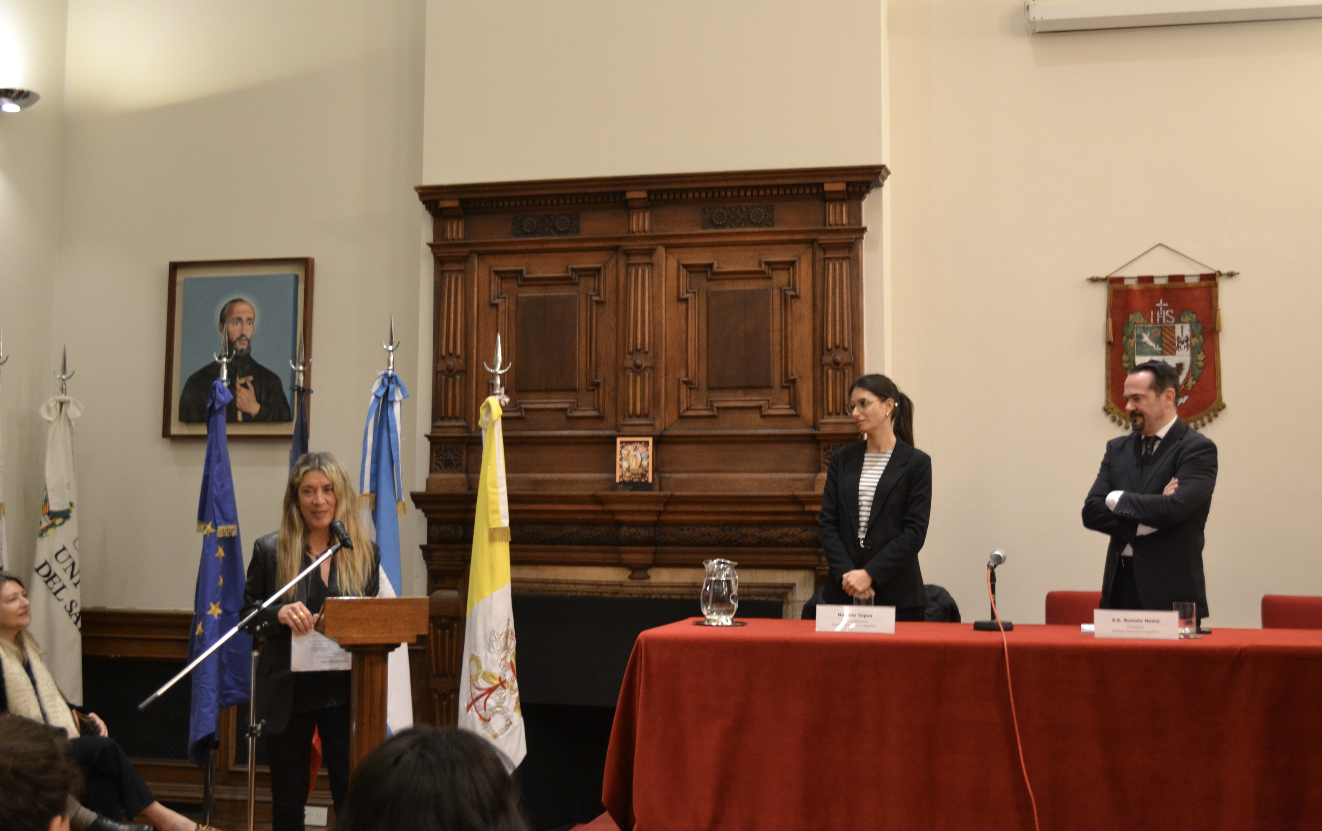 El Embajador de la República Francesa en Argentina, Romain Nadal, invitado por la carrera de Relaciones Internacionales de la Facultad de Ciencias Sociales, Educación y Comunicación de la Universidad del Salvador (USAL), ofreció una conferencia en el Rectorado ante estudiantes y autoridades, en la que desgranó los pilares de la política exterior francesa ante los complejos desafíos del mundo actual. Fue recibido por el Rector de la Universidad, Carlos Ignacio Salvadores de Arzuaga; la Vicerrectora de Investigación y Desarrollo, Luciana Tondello; la Decana de la Facultad, Gabriela Agosto; la Decana de la Facultad de Ciencias Jurídicas, Livia Uriol; el Coordinador del Programa "La Condamine", Guillaume Gibert, la Coordinadora del Programa Franco-Argentino, Martina Rojo, la profesora Vanesa Tuñón de la carrera de Relaciones Internacionales y por la Directora de la carrera, Mg Verónica Pérez Taffi.