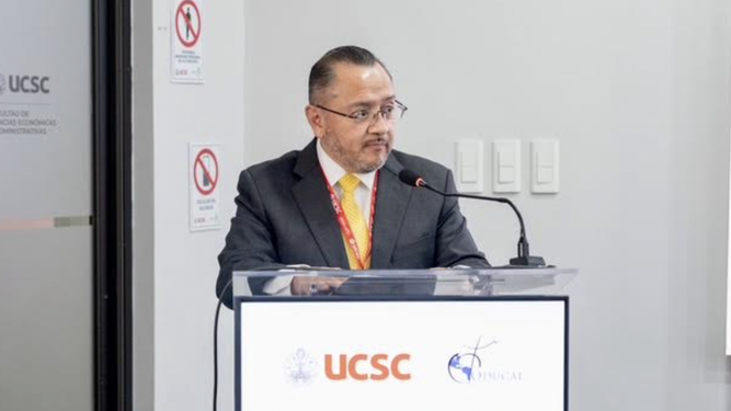 El Rector de la Universidad del Salvador (USAL) en el Congreso Internacional "Ex Corde Ecclesiae 35 años: Identidad, Misión y Esperanza” realizado en la UCSC, Chile.