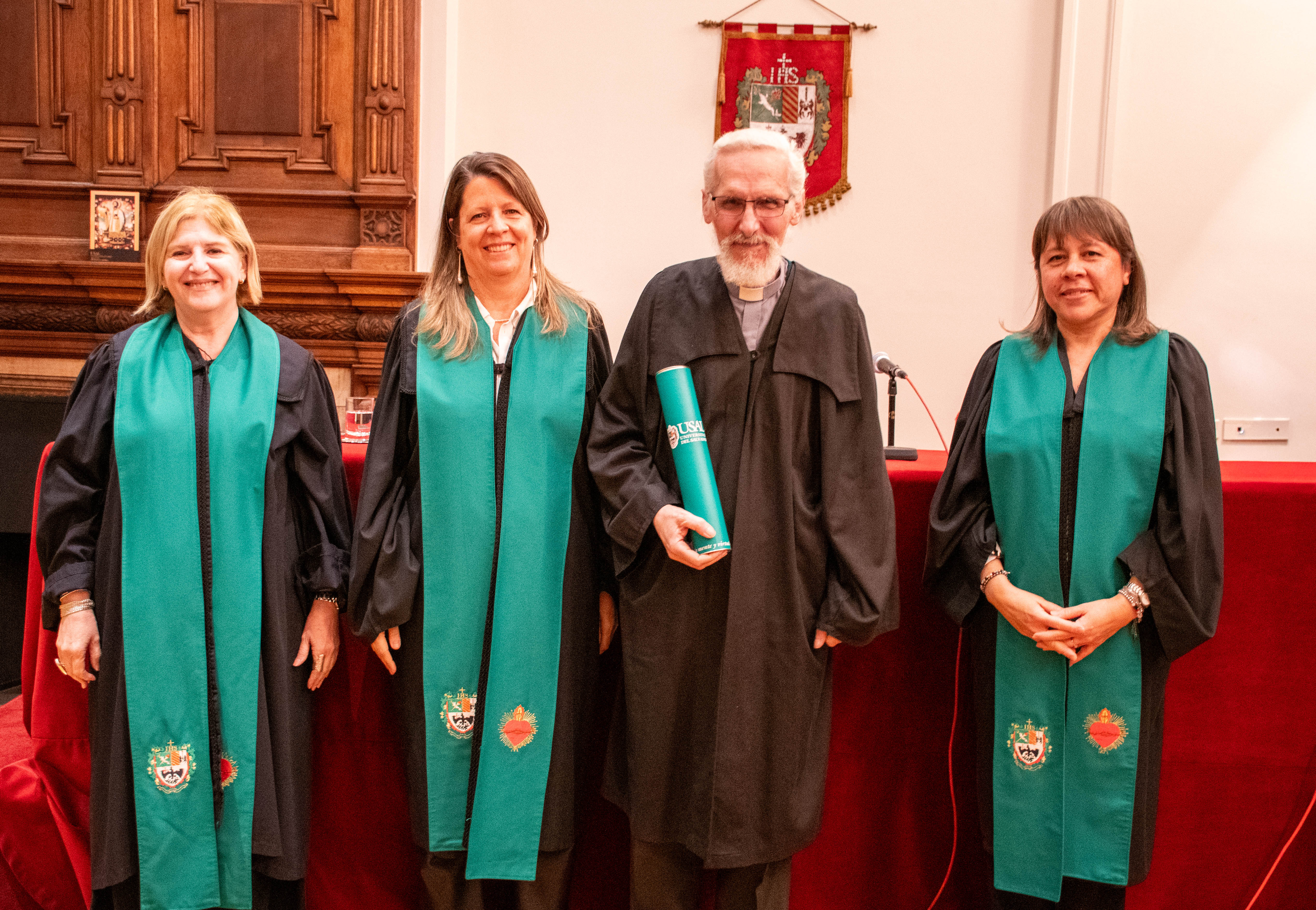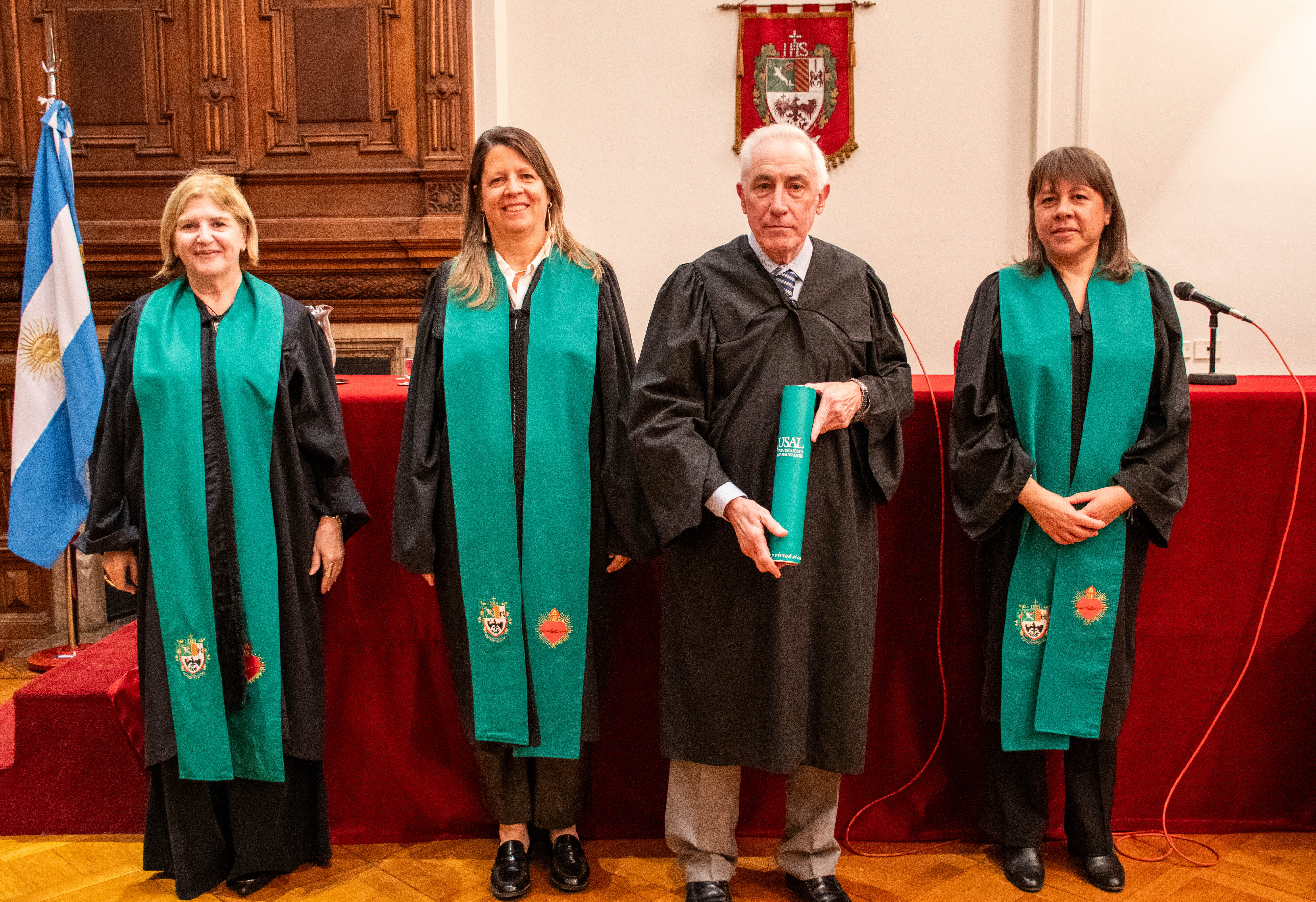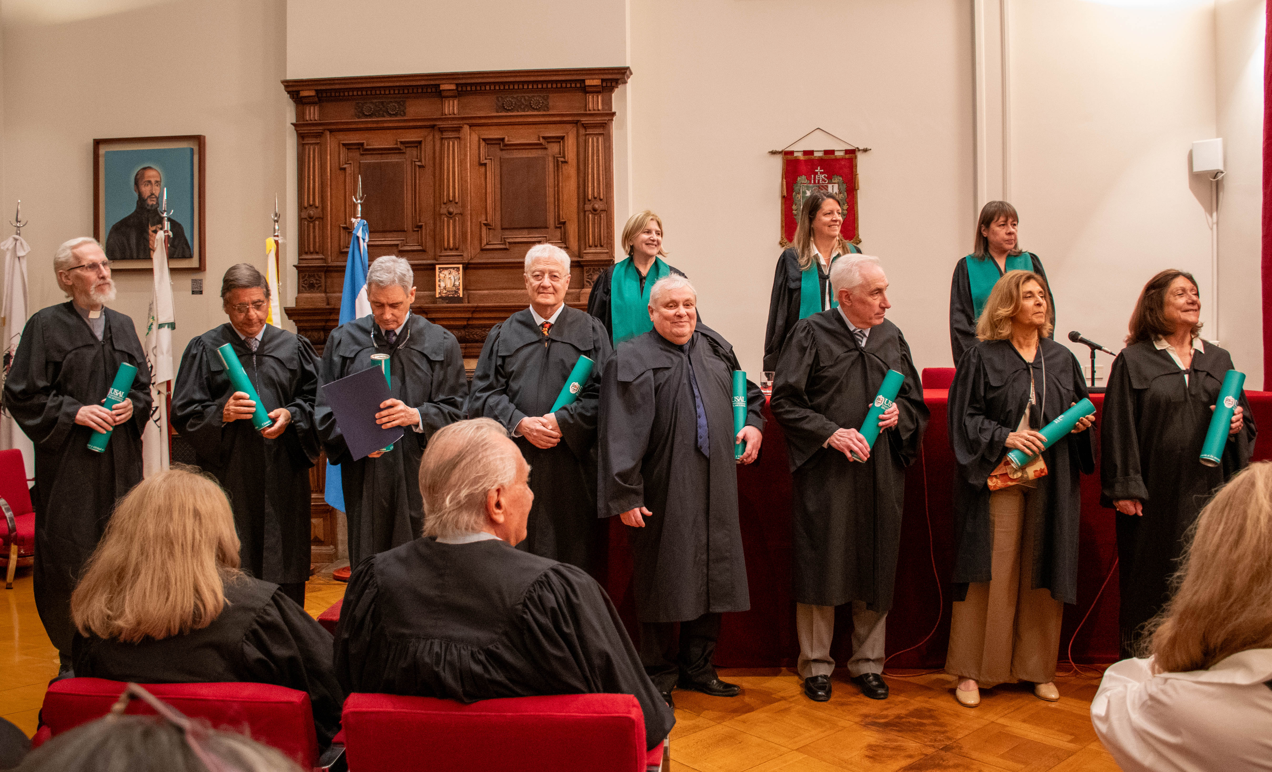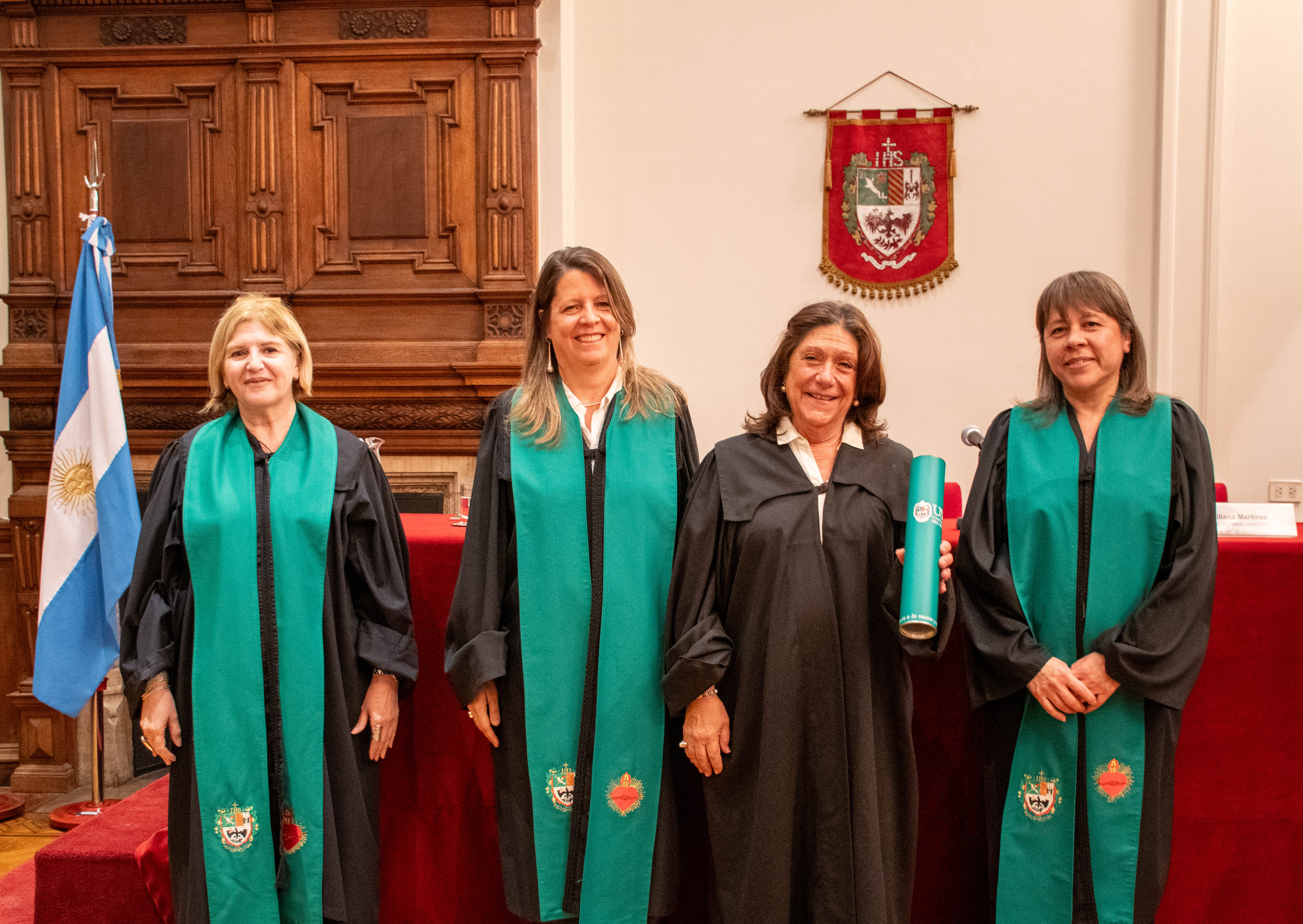 En el Salón "San Francisco Javier S.J" se llevó a cabo el Acto de Entrega de Diplomas a los Profesores Eméritos de la Universidad. Presidieron el Acto Académico la Vicerrectora Académica, Romina Cavalli; la Vicerrectora de Formación, Roxana Ruffo y la Secretaria General, Liliana Martínez.