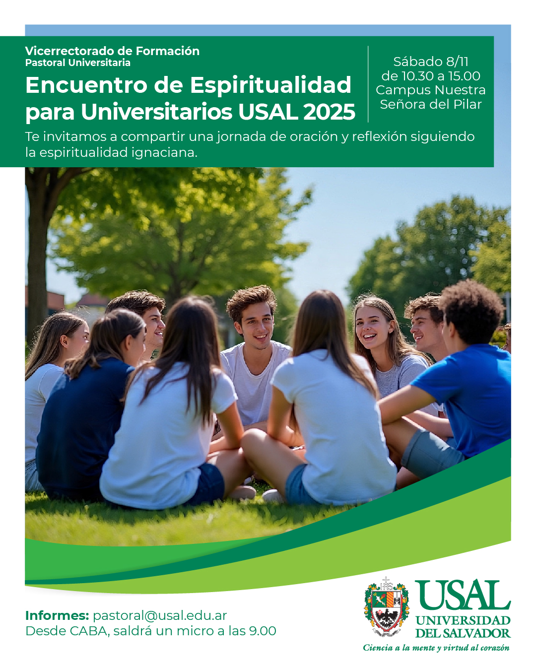 El Vicerrectorado de Formación (VRF) de la Universidad del Salvador (USAL) te invita a compartir una jornada de encuentro entre estudiantes de la comunidad universitaria.