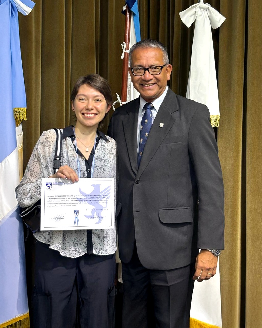 “Quiero agradecer a la Facultad de Ingeniería de la Universidad del Salvador por haberme propuesto para esta distinción y al Decano por acompañarme en un momento tan significativo para mi desarrollo profesional. Recibo este reconocimiento con enorme alegría y con el compromiso renovado de seguir formándome en los campos de las Ciencias Ambientales y la Biomímesis, contribuyendo al diseño de un futuro más sostenible y regenerativo”, señaló Victoria Selene Casco .