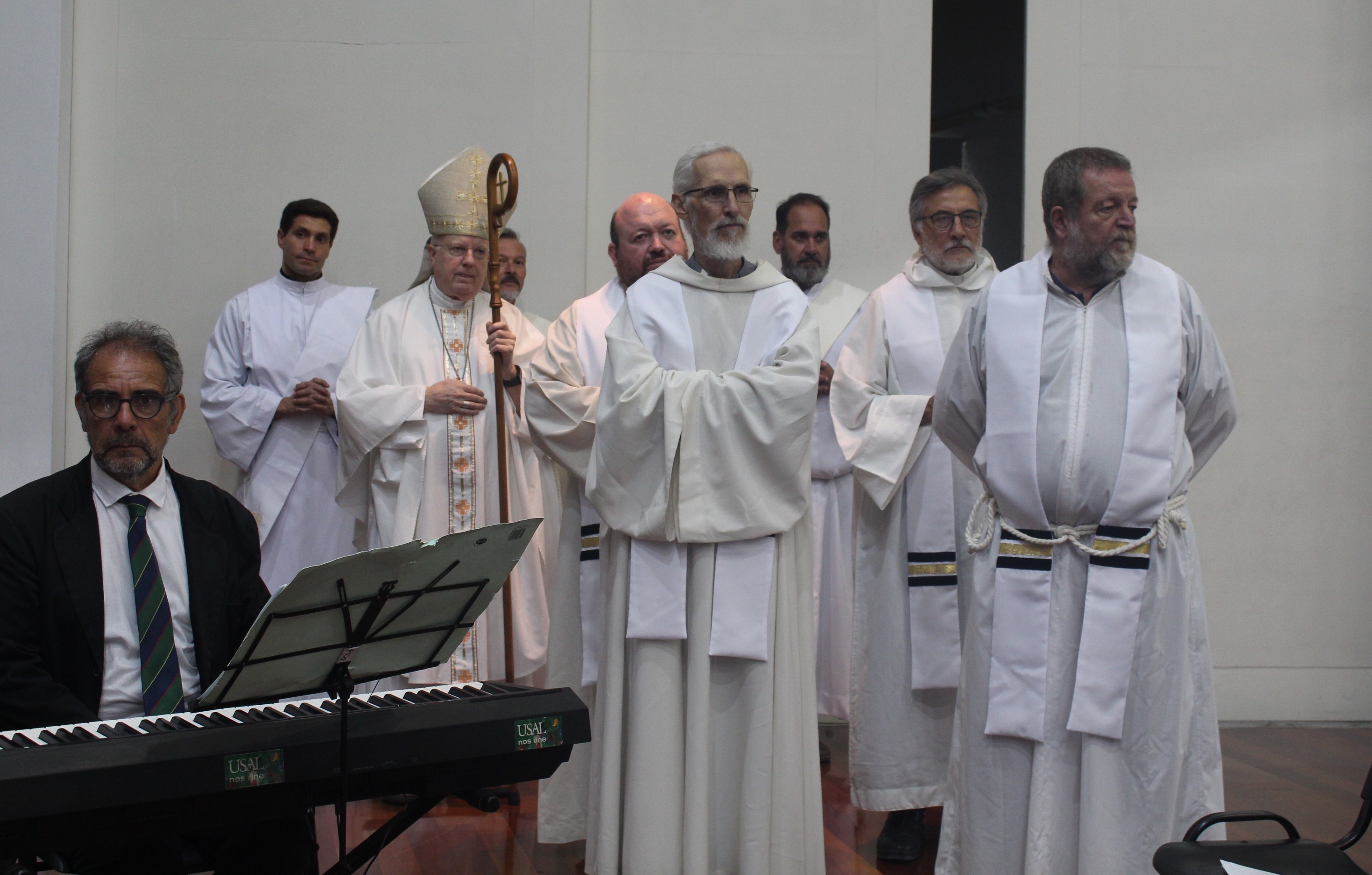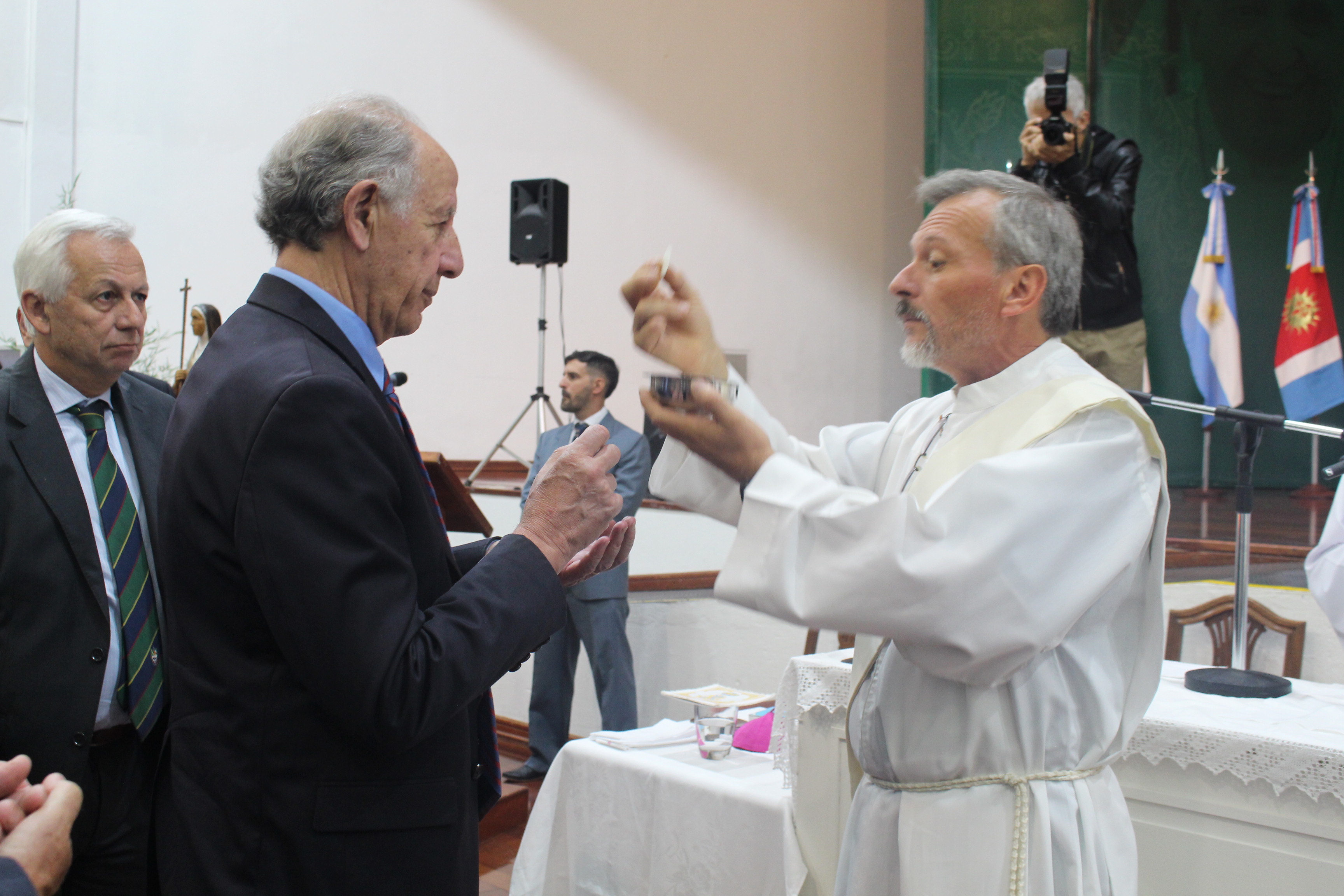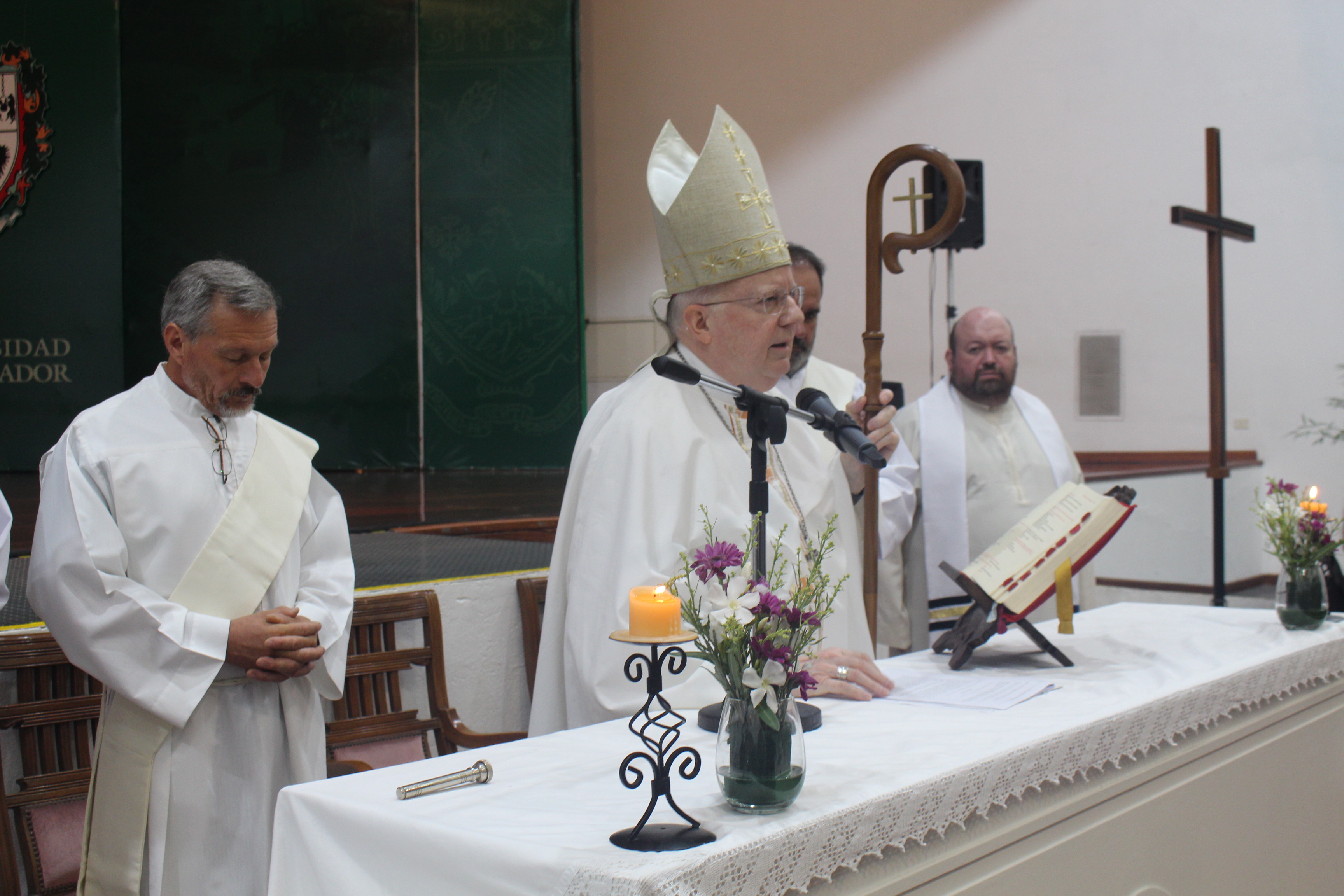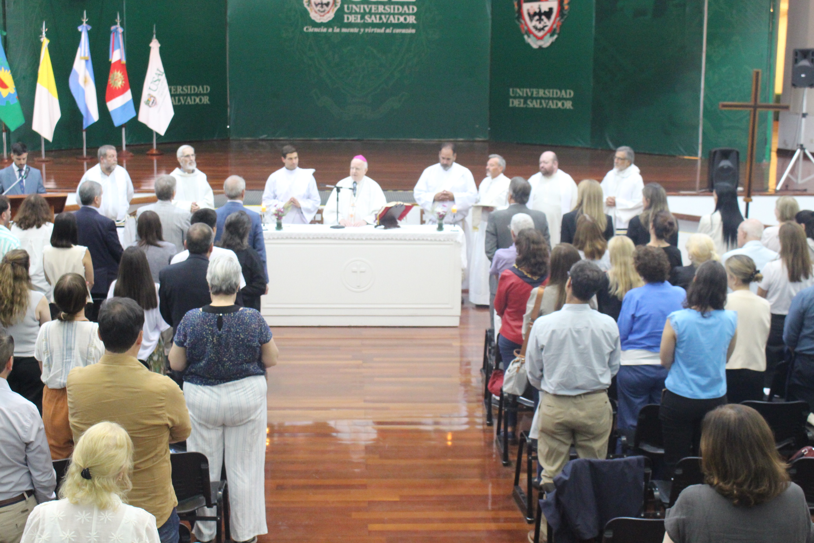 La celebración de la Santa Misa fue oficiada por Mons. Pedro María Laxague, Obispo de la Diócesis de Zárate-Campana; Ariel Mussari, Diácono permanente, Vicepresidente de Cáritas Diócesis Zárate Campana; Juan Congregado, Diácono permanente, Director de Cáritas; Haid Rudolf, Diácono Transitorio, docente del Vicerrectorado de Formación de la USAL; P. Gabriel Tomas, Andrés Tocalini, P. Hugo Acuña y el P. Juan José Milano, párrocos de nuestra Universidad.