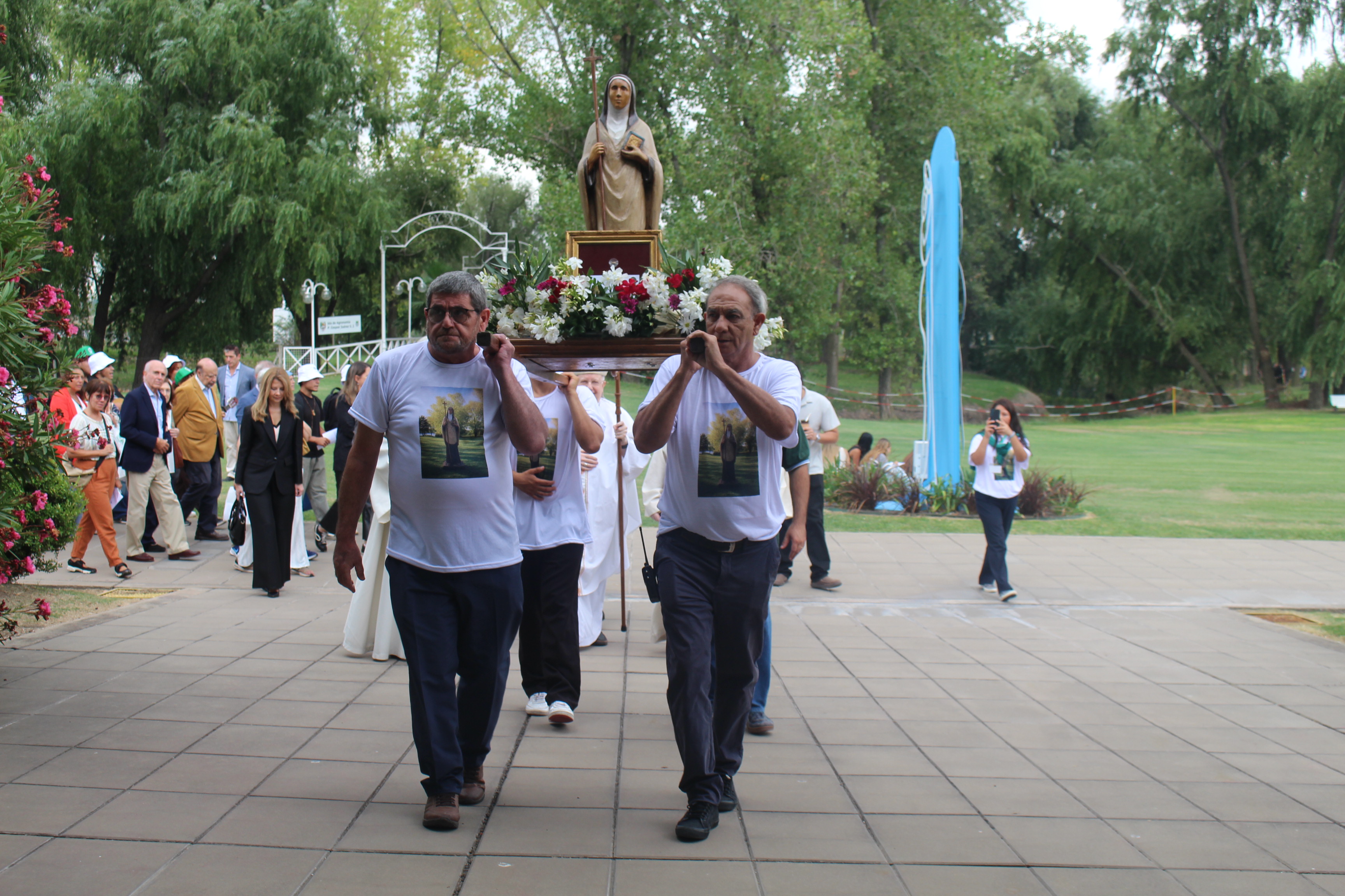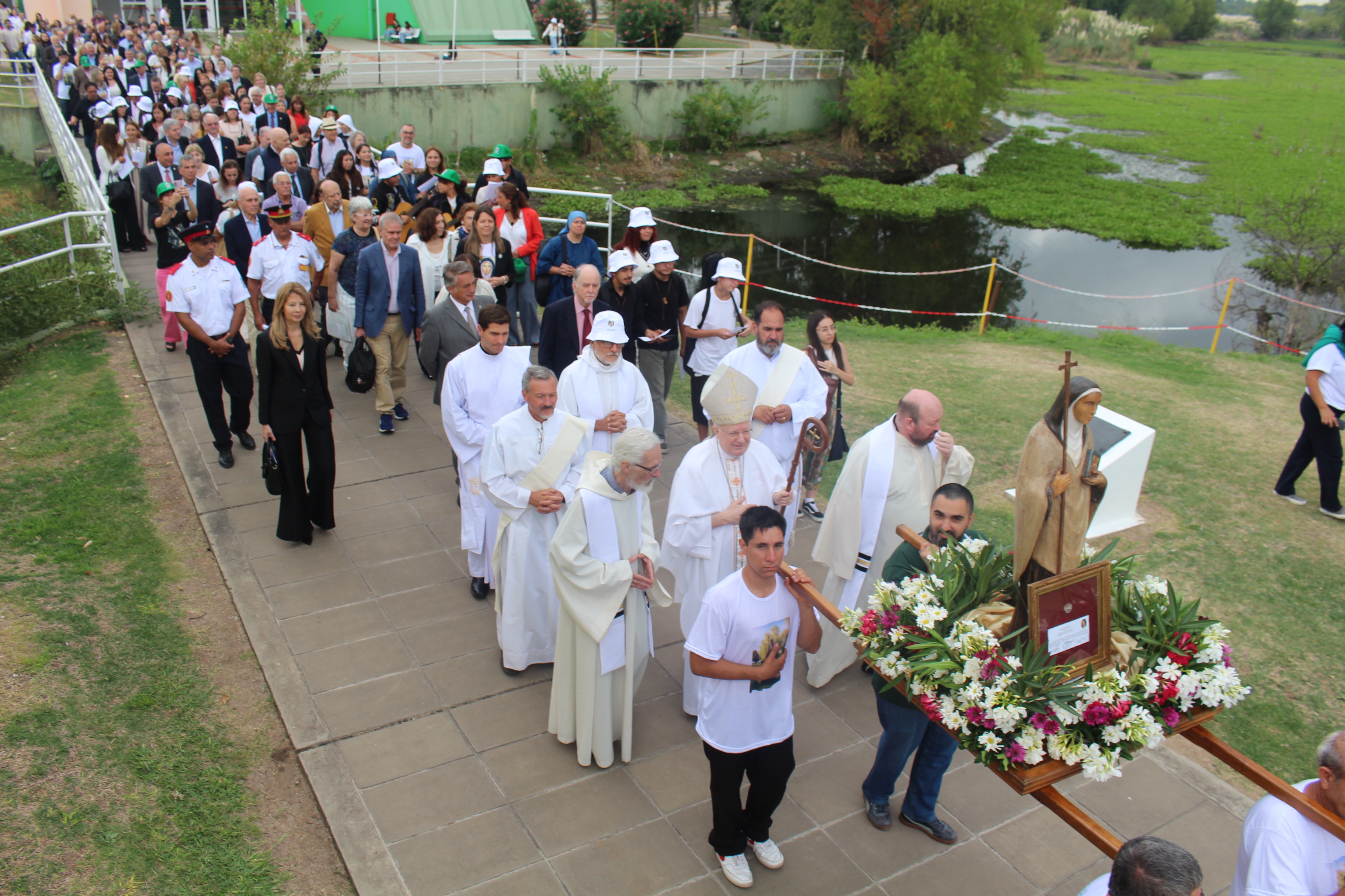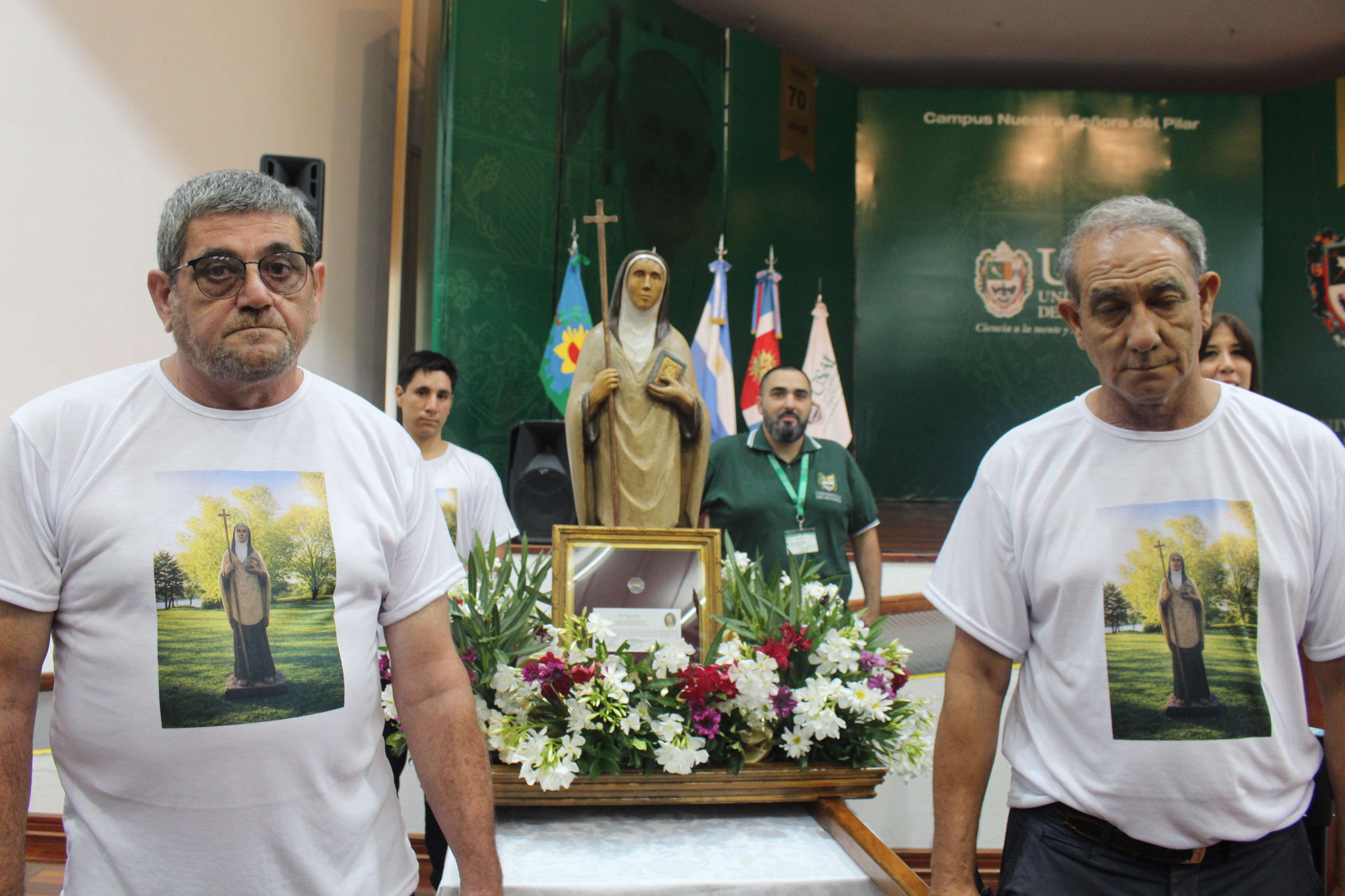 Una vez finalizada la Santa Misa, Mons. Laxague junto a los Sacerdotes, Diáconos, autoridades y toda la comunidad universitaria iniciaron una Procesión portando la imágen y Reliquia de Santa Mama Antula hacia la Capilla, que une el Auditorio Central con la Biblioteca. La Procesión fue acompañada con los cánticos de los jóvenes del Centro “Madre Teresa de Calcuta”. La imagen de “Mama Antula” fue portada en su recorrido por Gustavo D’ Urbano, docente del Vicerrectorado de Formación (VRF); Juan Rivas del Área de Servicios Generales; Javier Cavandoli, de la Secretaria Unificada del Campus de Pilar y Kevin Zalimben, estudiante de la Licenciatura en Periodismo.