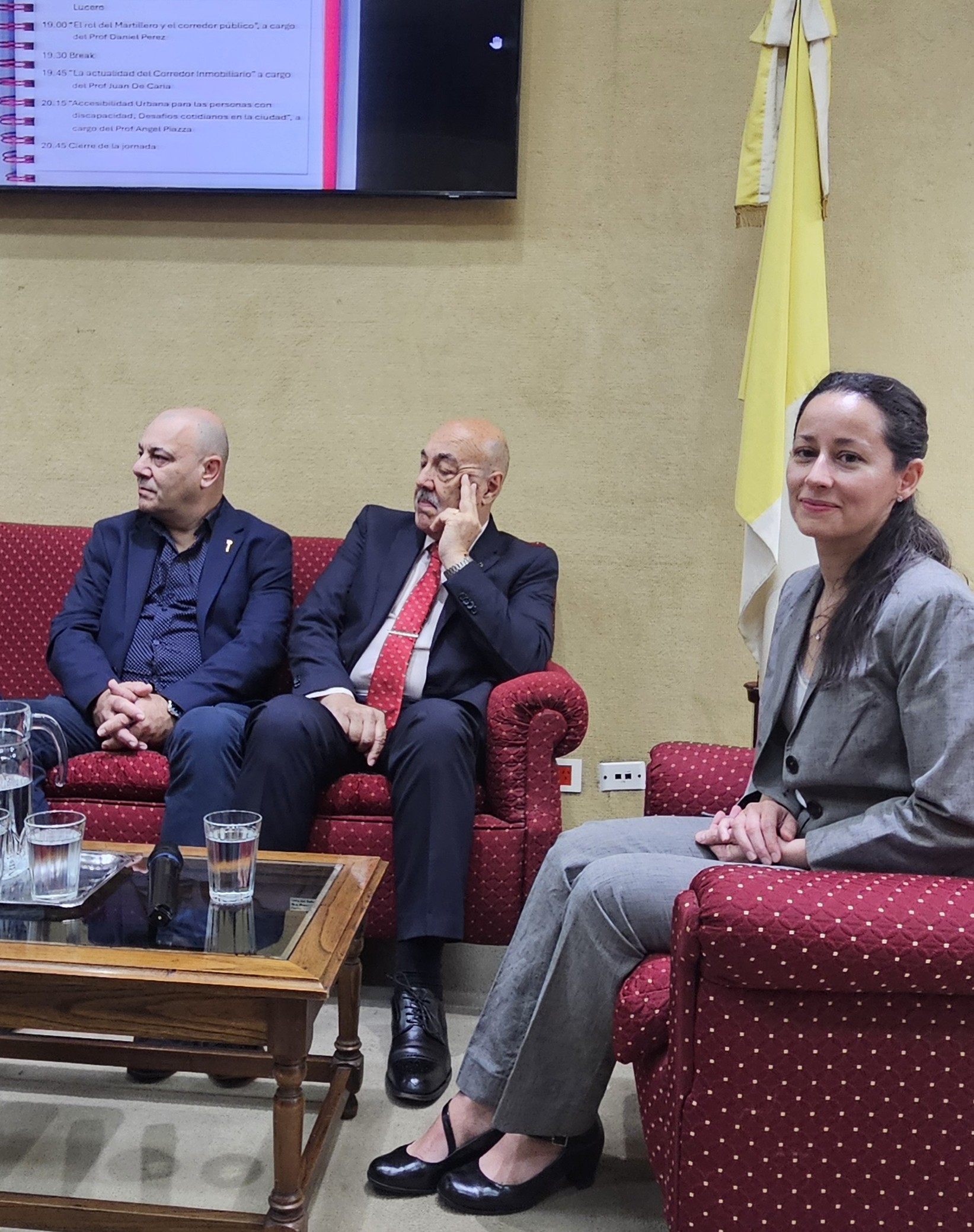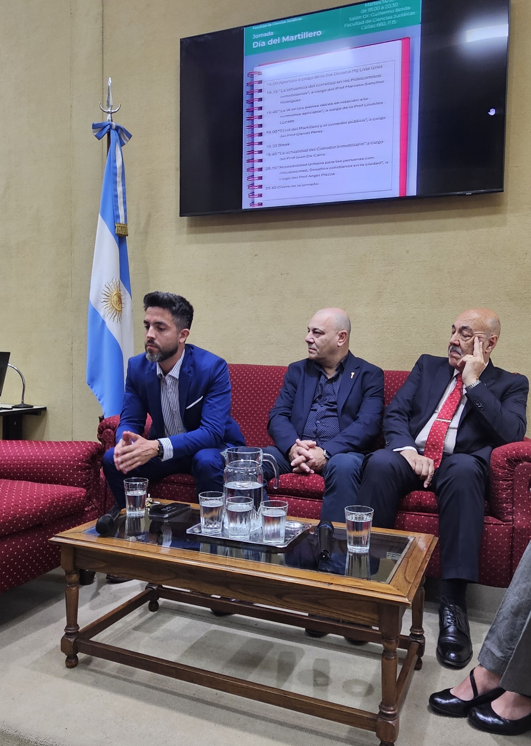 La jornada contó con las exposiciones de los profesores Marcelo Sánchez Rodríguez que habló sobre “La influencia del corretaje en los fideicomisos inmobiliarios”; Lourdes Lucero disertó sobre “La IA en los bienes raíces en relación a la normativa aplicable”; Daniel Pérez conversó sobre “El rol del martillero y el corredor público”; Juan De Caria expuso sobre “La actualidad del corredor inmobiliario” y Ángel Piazza explicó sobre “Accesibilidad urbana para las personas con discapacidad. Desafíos cotidianos en la ciudad”.