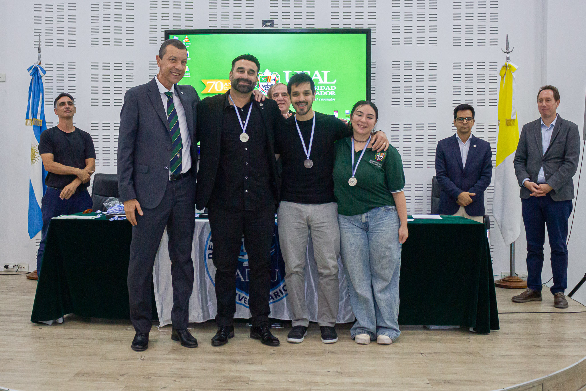 La ceremonia también rindió homenaje a la trayectoria. El profesor Marcelo Seminara se refirió a la histórica Selección de Básquet de la USAL, destacando cómo, más de 20 años después, sus integrantes volvieron a reunirse como graduados para participar como invitados en las dos últimas ediciones de la prestigiosa Copa Taylor. Todos los exjugadores recibieron medallas conmemorativas.