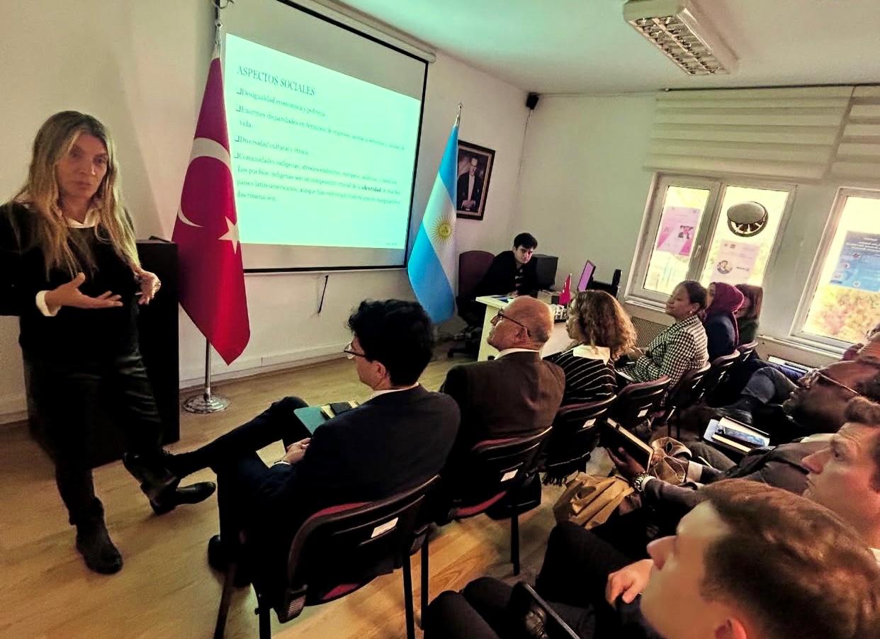 El evento, que abordó la actualidad política, económica y geopolítica regional, contó con una audiencia relevante, incluyendo la presencia del Sr. Guillermo Sosa, Embajador de Paraguay en Ankara, así como representantes de las misiones diplomáticas latinoamericanas en la capital turca e investigadores especializados.