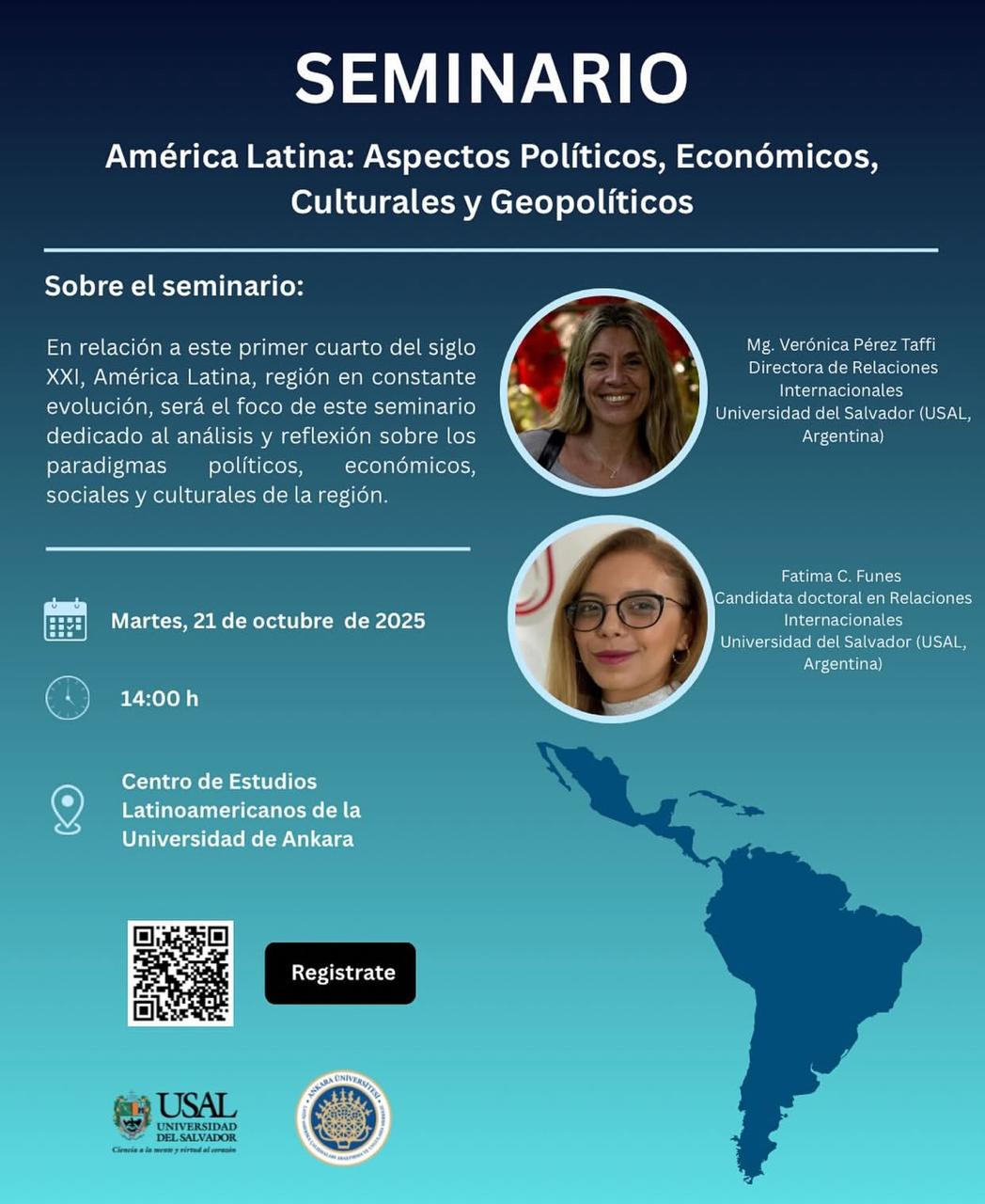 El 21 de octubre, la Universidad del Salvador (USAL) tuvo una destacada participación en el seminario internacional "América Latina: Dimensiones Políticas, Económicas, Culturales y Geopolíticas", organizado por el Centro de Estudios Latinoamericanos de la Universidad de Ankara, Turquía.