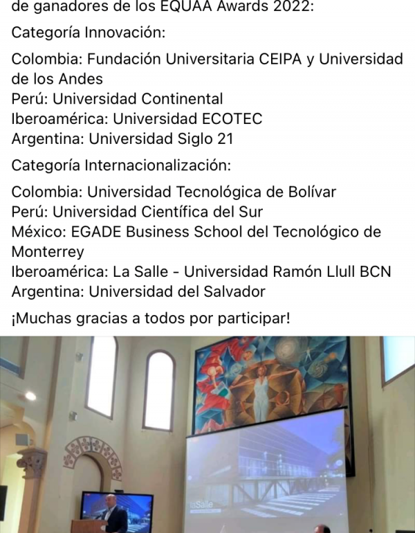 Los EQUAA Awards 2022 son promovidos por la Agencia Internacional de Acreditación Académica del mismo nombre, y el objetivo del concurso es reconocer internacionalmente a, aquellas Instituciones de Educación Superior, que haya o vengan implementando iniciativas institucionales llevadas a cabo por docentes, directivos, coordinadores y/o estudiantes.