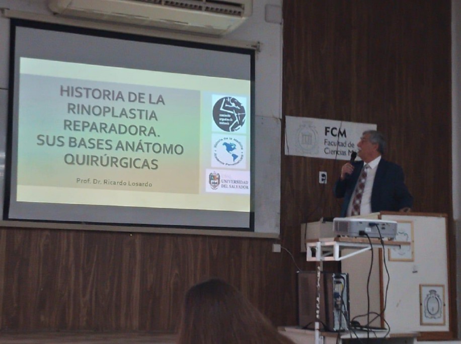 En representación de la Universidad del Salvador (USAL), el Prof. Dr. Ricardo J. Losardo, docente de la Carrera de Especialización en Cirugía Plástica, ofreció la Conferencia Magistral titulada “Historia de la rinoplastia reparadora. Sus bases anatomo-quirúrgicas”.