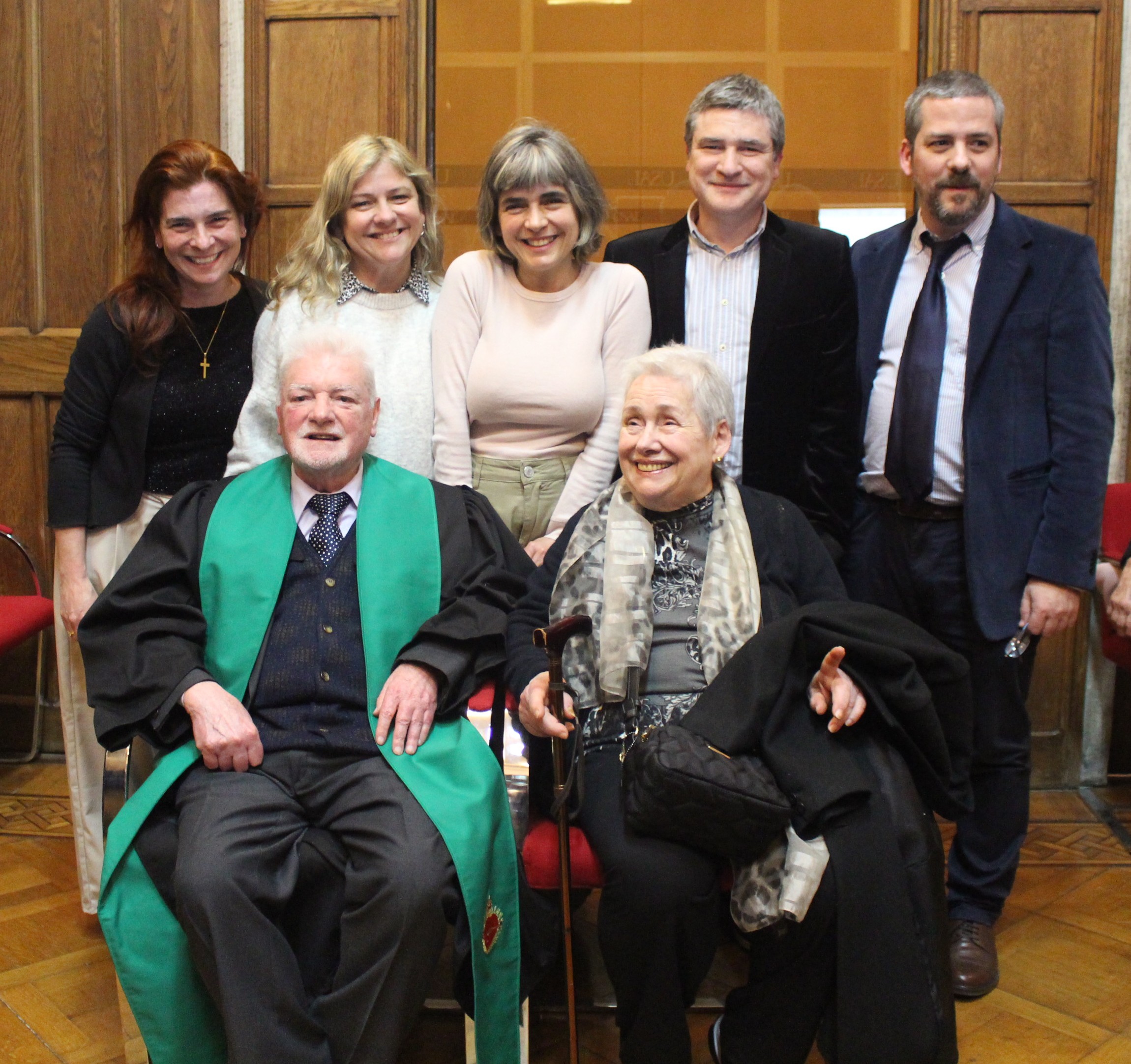 “Ustedes, a través de la bibliografía, también pueden descubrir la biografía de la biblioteca; porque, en realidad, para un investigador, la biblioteca es algo que adhiere a su desarrollo vital. Y, por supuesto, que ahí al lado empujando, ¿quiénes están? La familia. La familia es central. Después están, por supuesto, las instituciones, los amigos; y a esto de la familia ingresan los discípulos. ¿Saben por qué? Lo decía Platón: porque los discípulos son libros vivientes. Si se tienen discípulos, el futuro ya está integrado en el presente. Y, por otra parte, fíjense, esto nos llena de optimismo; hay que ser optimistas en la vida particular, y si podemos, fluir en la pública. Esto se los dice un inmigrante que llegó al país con una vocación determinada hace 64 años. Soy, con mucho gusto para mí y para toda mi familia, soy inmigrante, y lo he hecho todo en la Argentina, y se lo debo todo a la Argentina. Eso quiero que lo sepan todos, porque lo proclamo y lo digo permanentemente”.