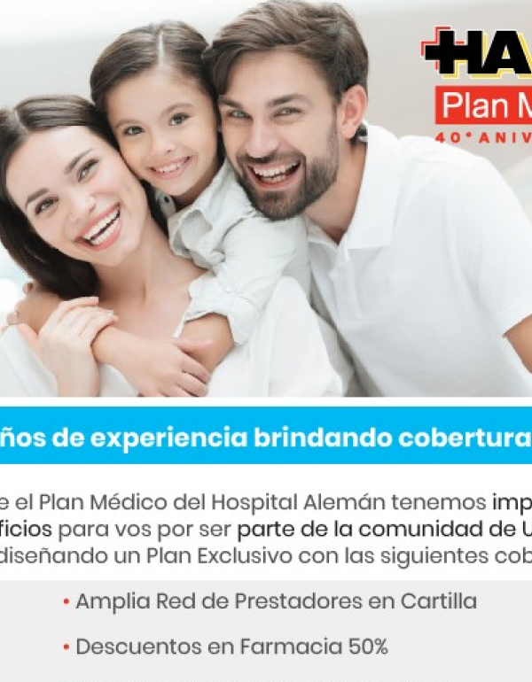 Desde el Plan Médico del Hospital Alemán ofrecen importantes beneficios por ser parte de la Comunidad USAL.