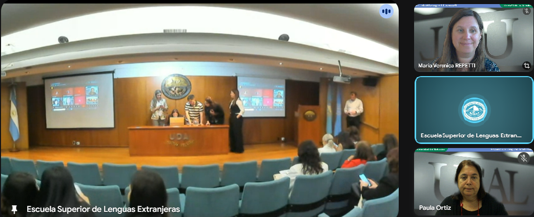 Invitadas especialmente por los organizadores, asistieron virtualmente la directora de los Traductorados de inglés, Trad. Púb. María Verónica Repetti, quien formó parte del comité académico, y la directora de la Escuela de Lenguas Modernas, Dra. Trad. Púb. Paula Ortiz, en representación de la USAL.