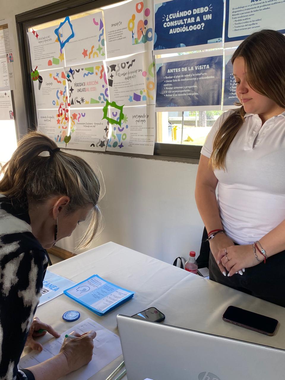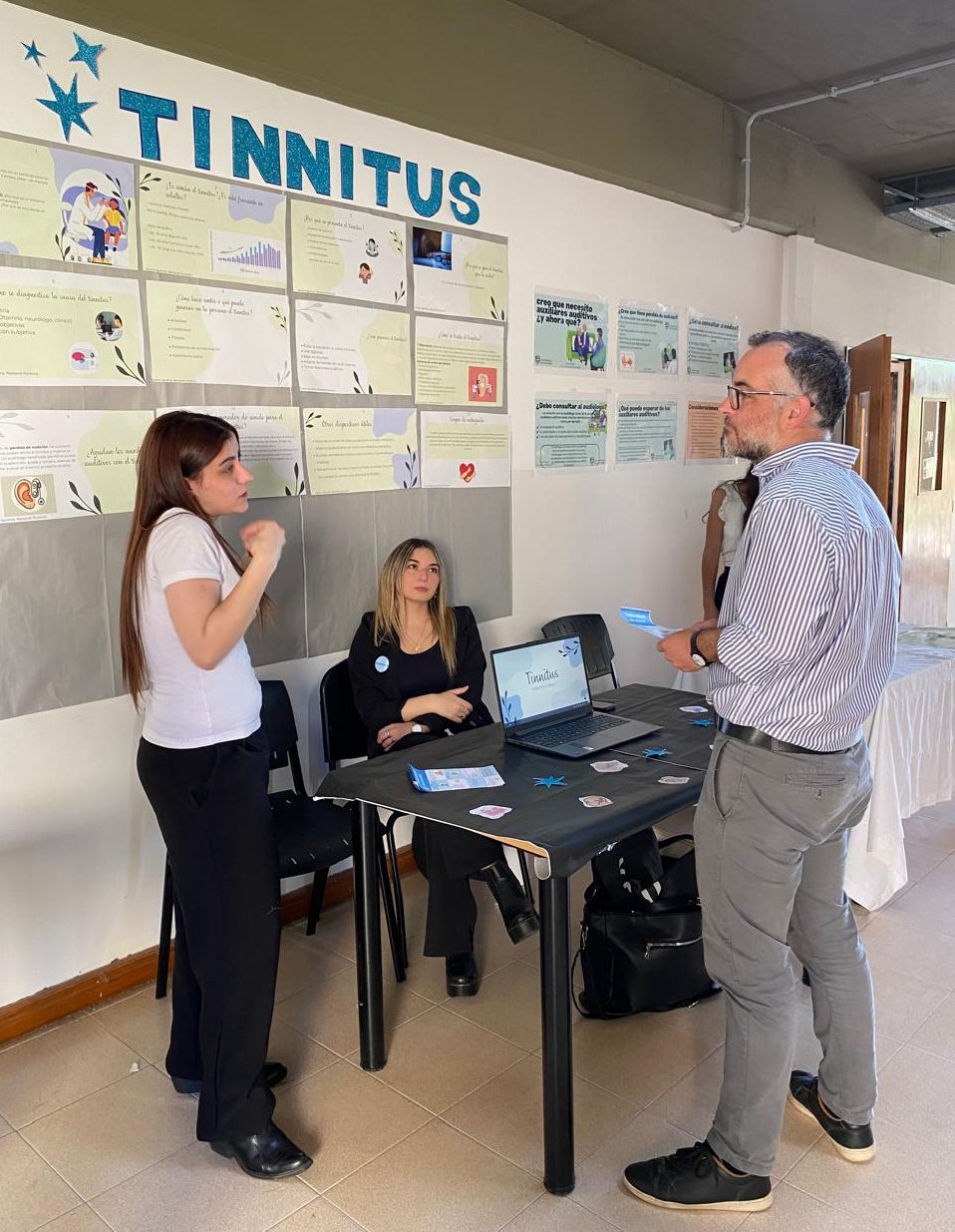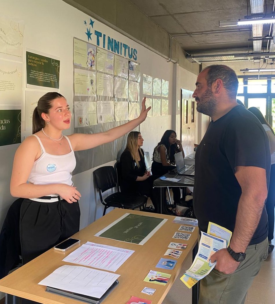 Con la presencia de la Directora de Fonoaudiología en la sede Pilar de la USAL, Mg. Bettina Schettini, quien impulsa este tipo de actividades que integran la teoría con una práctica formativa reflexiva, y la guía de la Profesora De Lellis, las estudiantes de primer año de la Carrera presentaron stands interactivos que invitaron a la Comunidad USAL a tomar conciencia de que “Cuidar la audición es cuidar el vínculo con los demás."