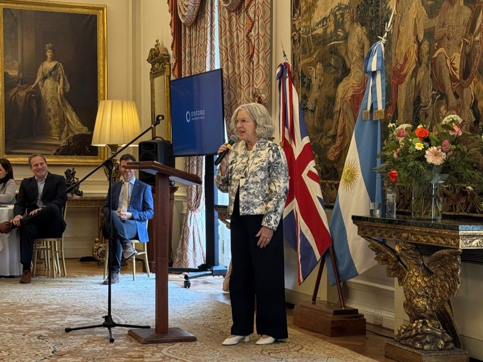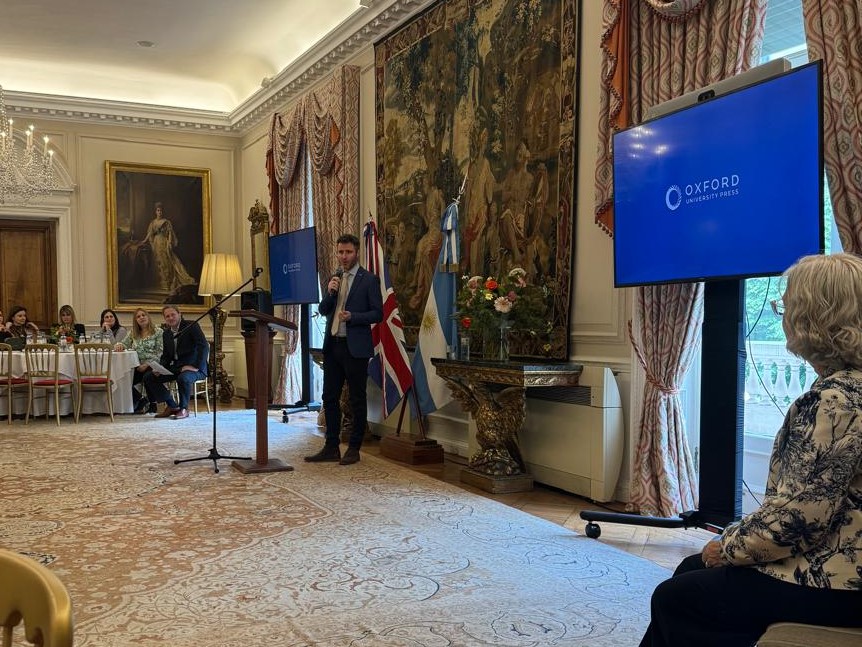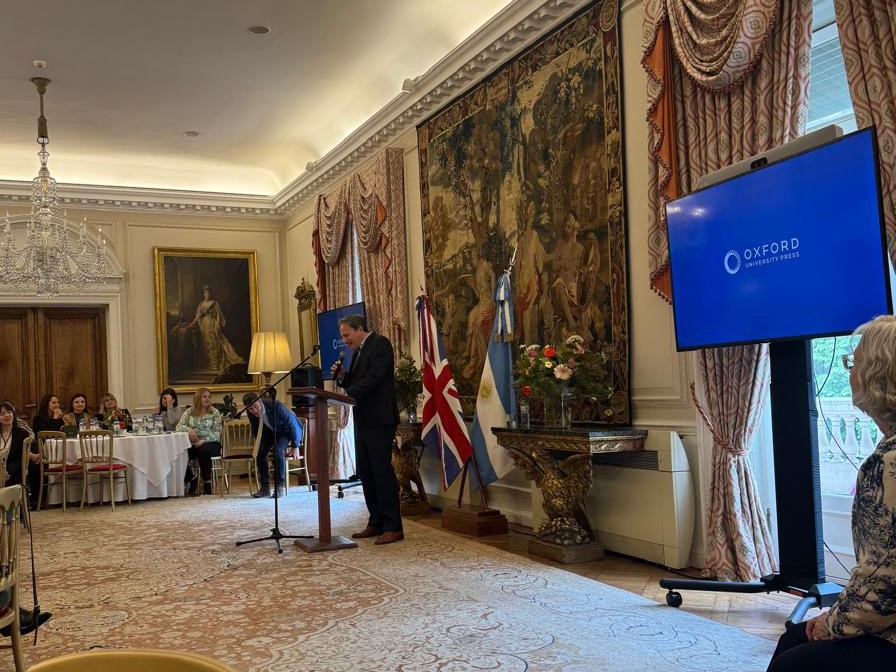 David Markey, asesor político y económico de la embajada, dirigió las palabras iniciales para remarcar la importancia del estudio del inglés como segunda lengua y destacar la posición de Argentina entre los países con un mayor dominio del inglés. A continuación, tomó la palabra Diego Daucourt, gerente de ventas de Oxford University Press, quien habló del significativo posicionamiento de la editorial en el país y del reconocimiento de la Universidad de Oxford como la mejor universidad del mundo según el ranking mundial de universidades de Times Higher Education.