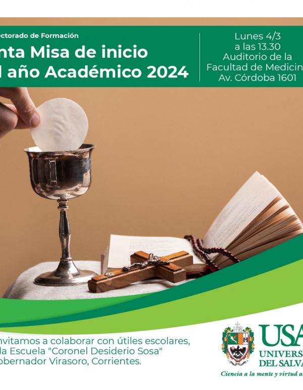 Invitamos a toda la Comunidad Universitaria a la celebración de la Santa Misa de inicio del año académico, que se realizará el lunes 4 de marzo, a las 13:30 horas, en el auditorio de la Facultad de Medicina, Av. Córdoba 1601, CABA.