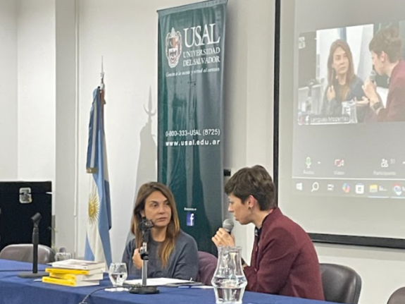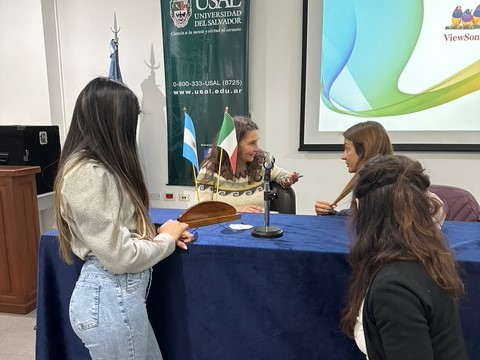 El 6 de agosto visitó la Escuela de Lenguas Modernas de la Universidad del Salvador (USAL) Viola Ardone, una de las voces más potentes de la narrativa italiana contemporánea, autora de Il treno dei bambini y Oliva Denaro. Participó en el conversatorio «Traducción, dialectos y desafíos literarios» con Silvia Querini, su traductora al español desde Barcelona, y con la moderación de Giulia Ricci, coordinadora didáctica de la Dante Alighieri de Ramos Mejía.
