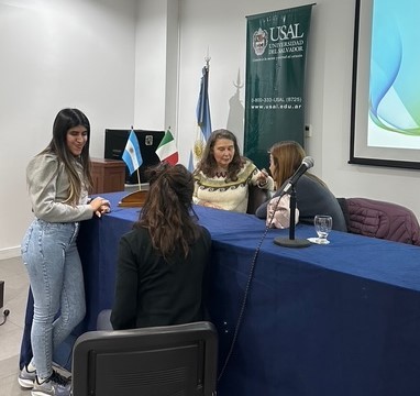 Acompañaron por la Escuela de Lenguas Modernas, su Directora, Paula Ortiz; la Prosecretaria Académica, Verónica Repetti, y la docente de los Traductorados en Italiano, Francesca Capelli, junto a sus estudiantes. Al finalizar el encuentro, Capelli y las alumnas de traducción entrevistaron a la escritora.
