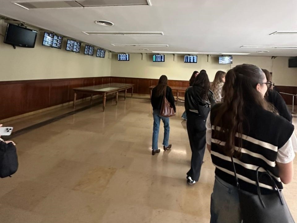 Durante la visita, de un modo ameno y práctico, los estudiantes recibieron información, por parte de Antonella y Cristian, sobre la operatoria anterior y actual de la Bolsa y sobre las actividades que allí se desarrollan, a los fines de poder ampliar el léxico y los conocimientos de base necesarios para la realización de las traducciones económico-financieras que se encuentran desarrollando en este tramo de la asignatura. Asimismo, les permitirá realizar un análisis comparativo con la Bolsa de Valores de Nueva York (New York Stock Exchange), el mayor mercado de valores del mundo en volumen monetario, sobre cuya normativa se encuentran trabajando actualmente a través de ejercicios de traducción.